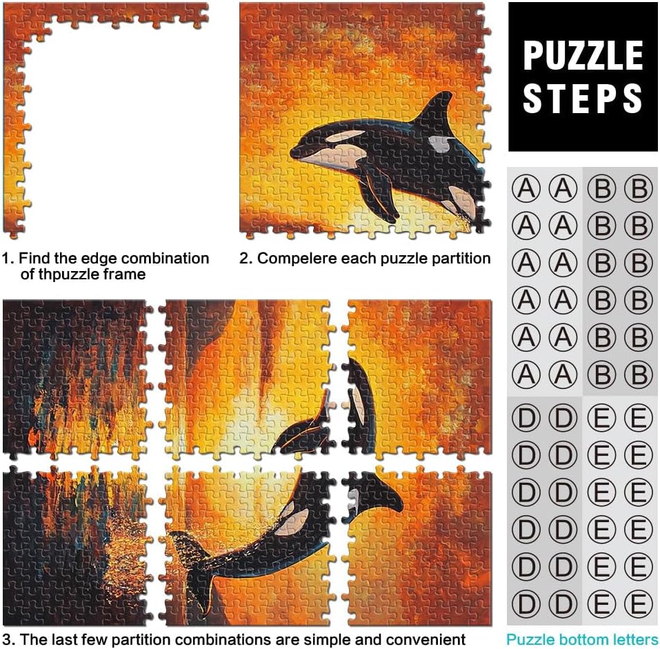 Puzzle da 2000 pezzi per adulti e adolescenti orca al tramonto Fatto di cartone per età 14+ Giocattoli antistress regalo di compleanno misurare:70x100cm