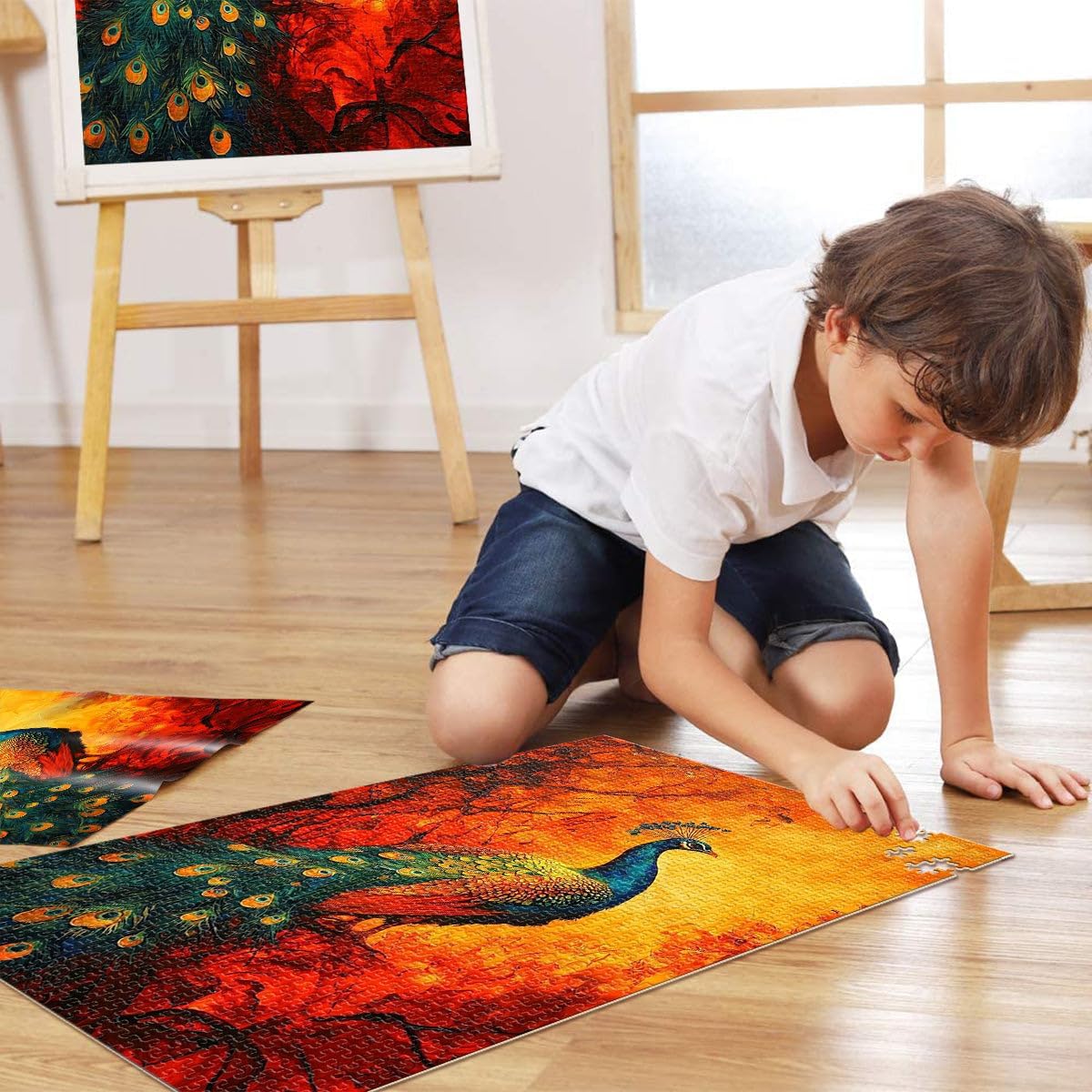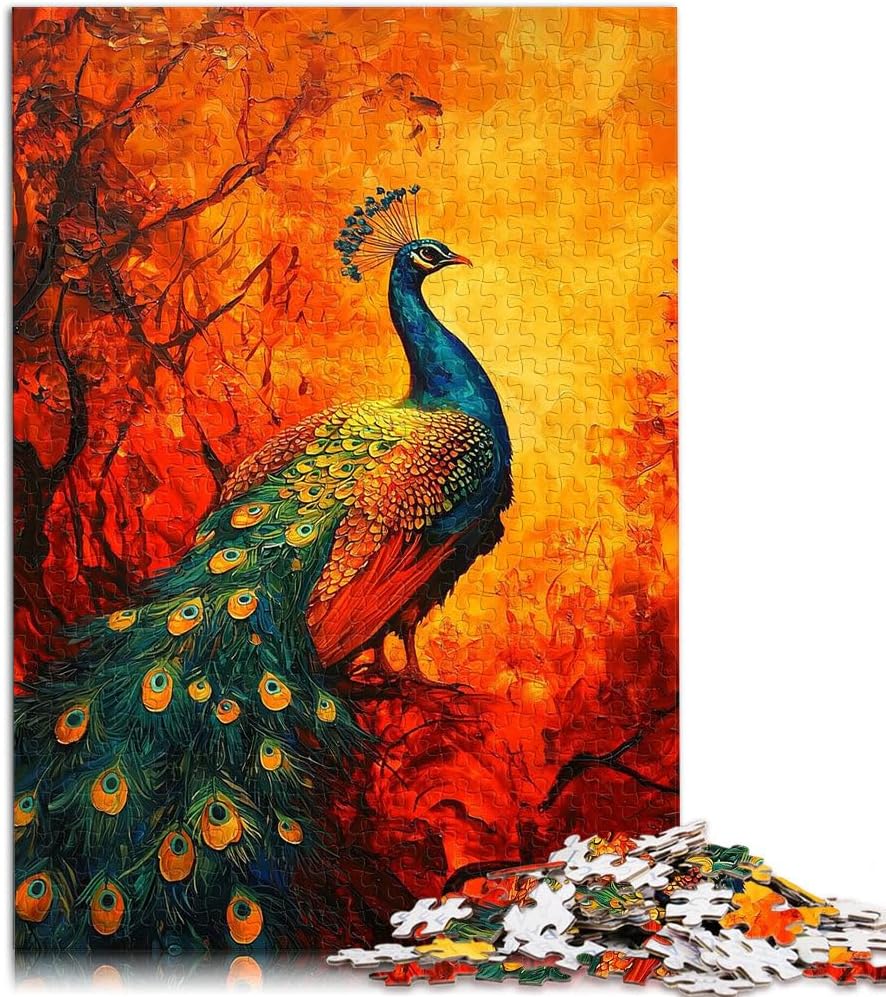 Puzzle da 2000 pezzi per adulti e adolescenti Pavone nella foresta infuocata Fatto di cartone Adatto a partire dai 14 anni Giocattolo educativo di decompressione intellettuale Regali di compleanno