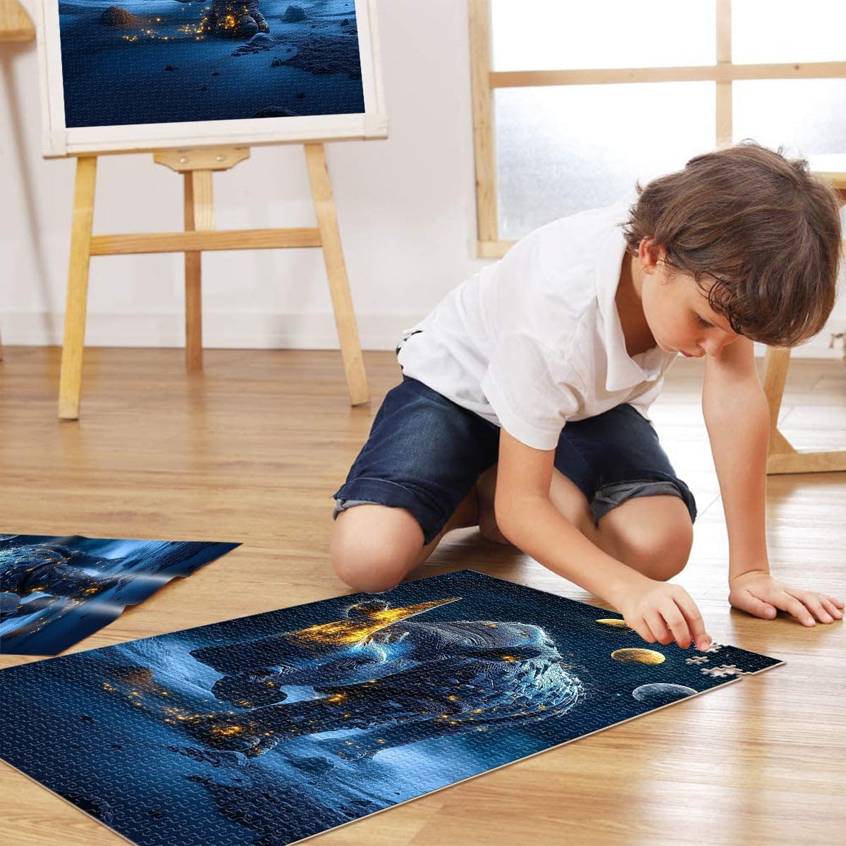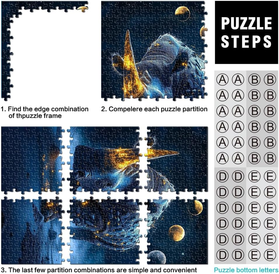 Puzzle da 2000 pezzi per adulti e adolescenti Rinoceronte luminoso sotto le stelle Fatto di cartone per età 14+ Difficile da completare ma divertente e umoristico Grande regalo misurare:70x100cm