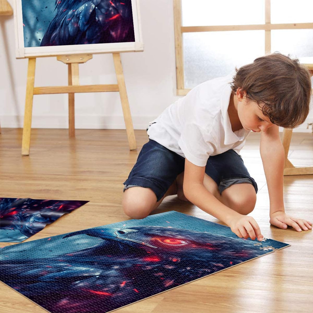 Puzzle da 2000 pezzi per adulti Falco dagli occhi rossi Fatto di cartone per età 14+ Decorazione della casa Come regalo per tutta la famiglia e gli amici misurare:70x100cm