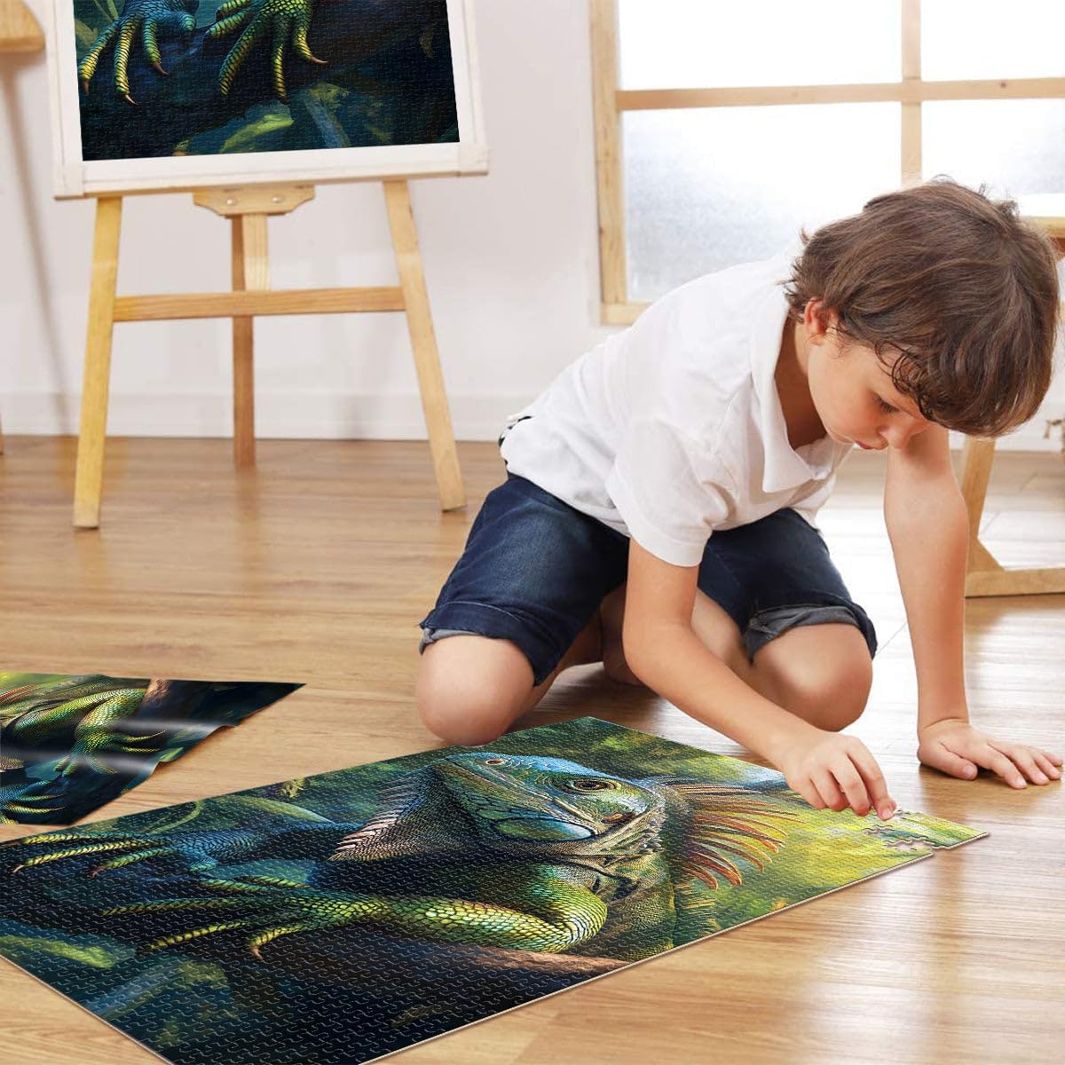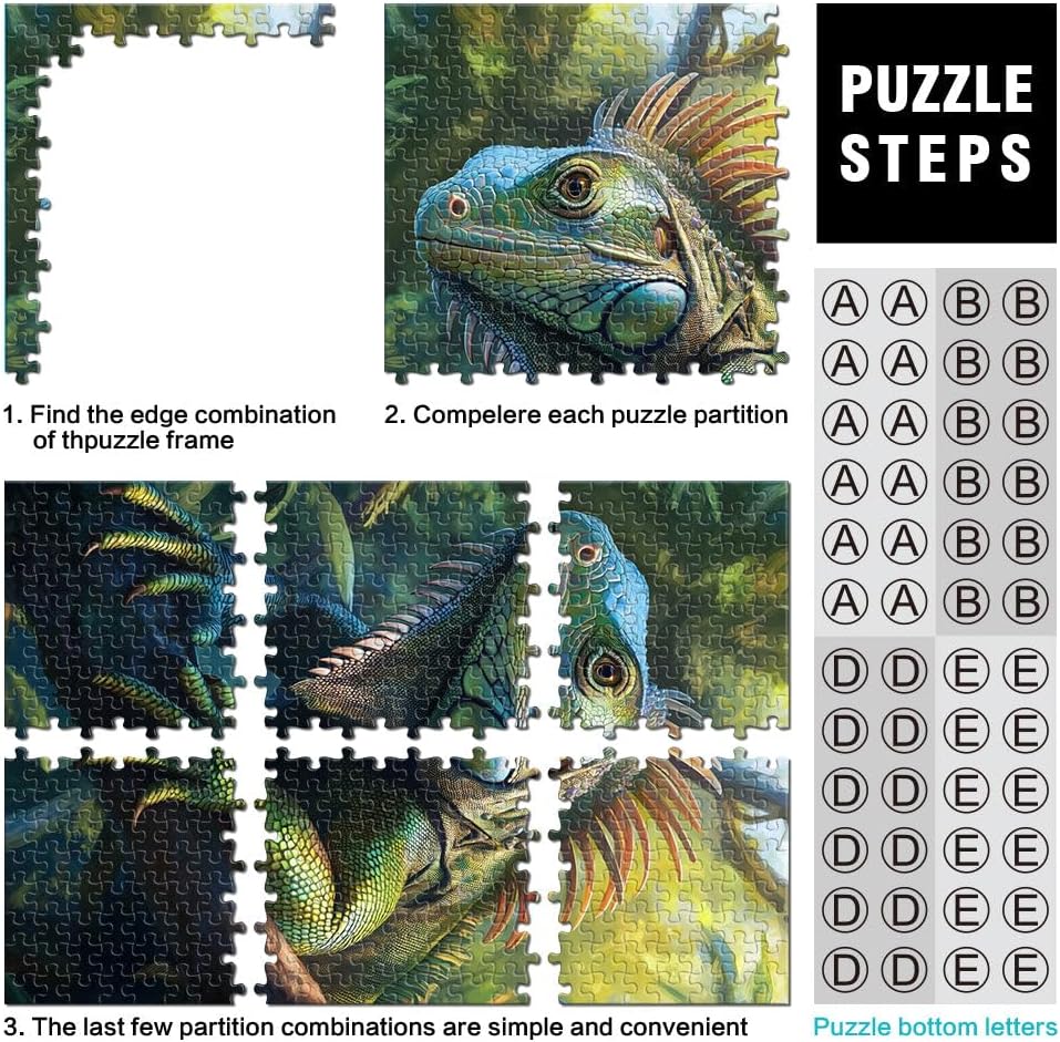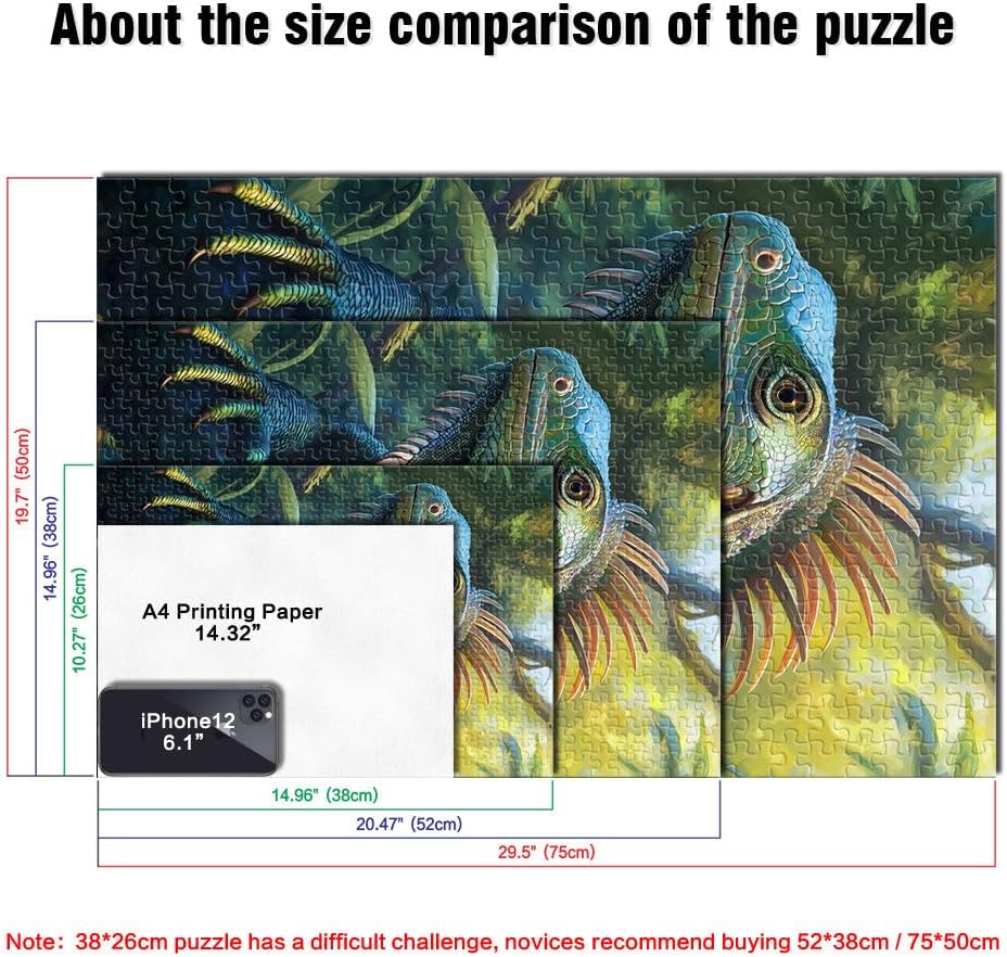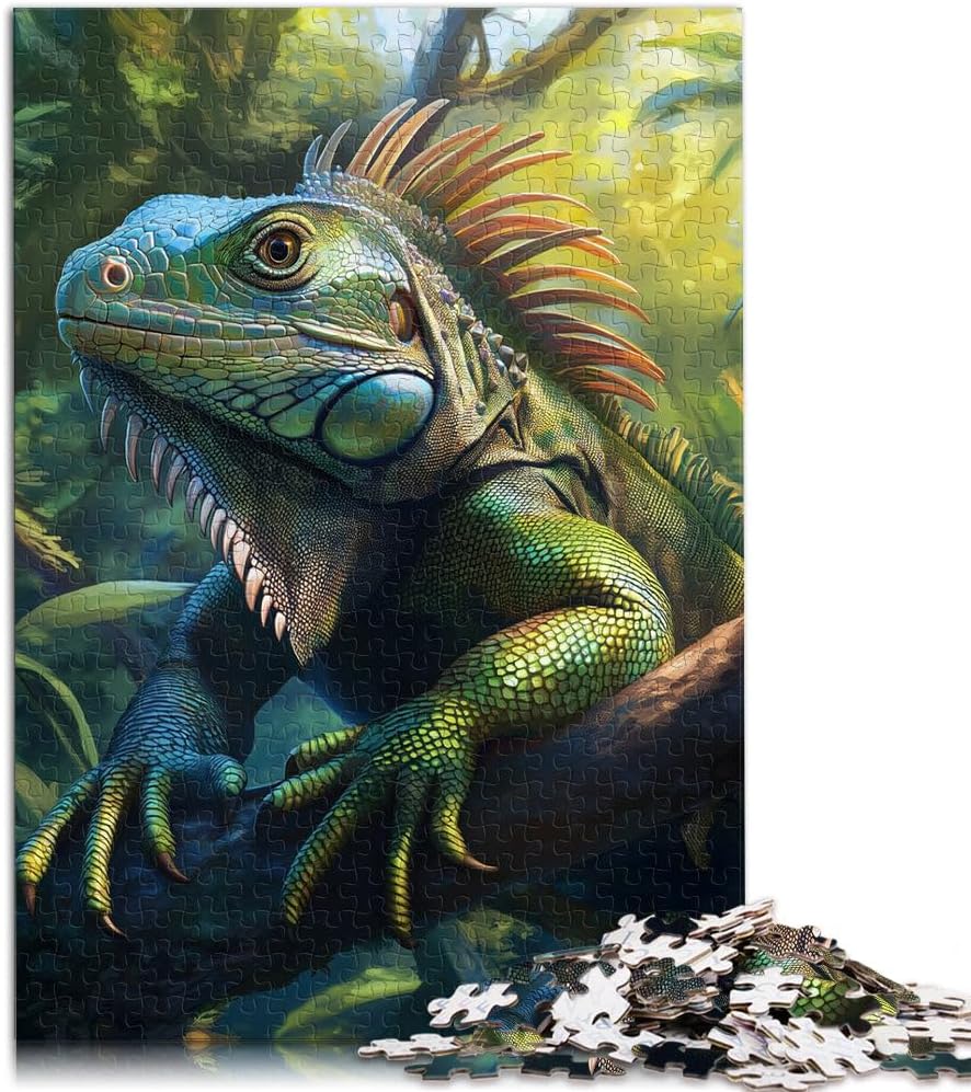 Puzzle da 2000 pezzi per adulti Iguana verde nella giungla Fatto di cartone da 14 anni in su decorazione murale Regalo di compleanno di Natale misurare:70x100cm