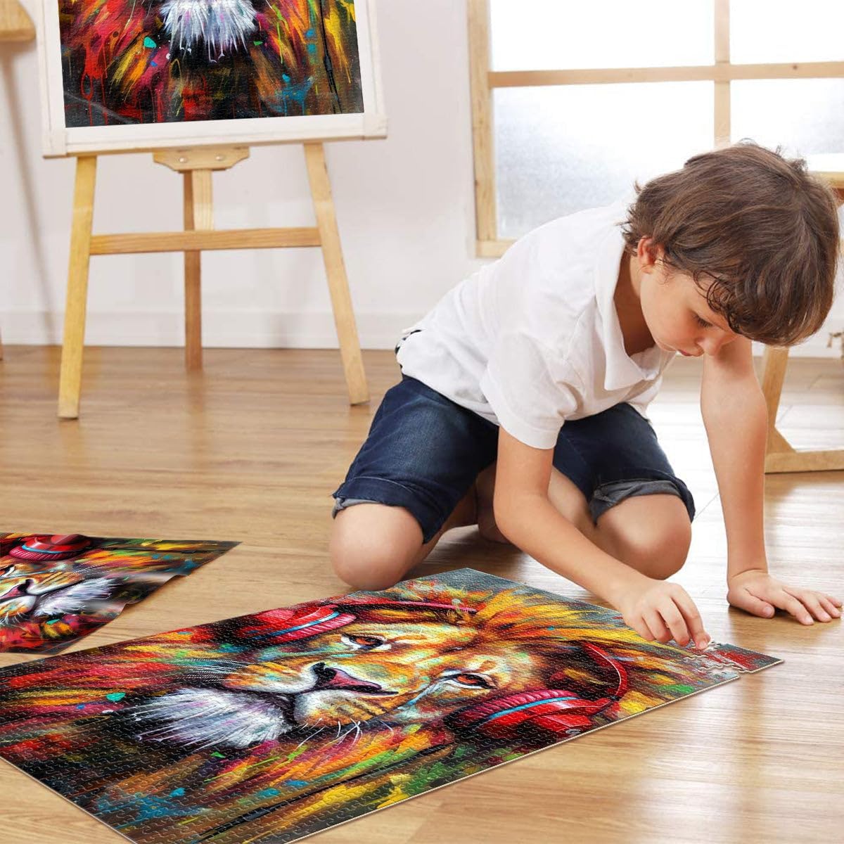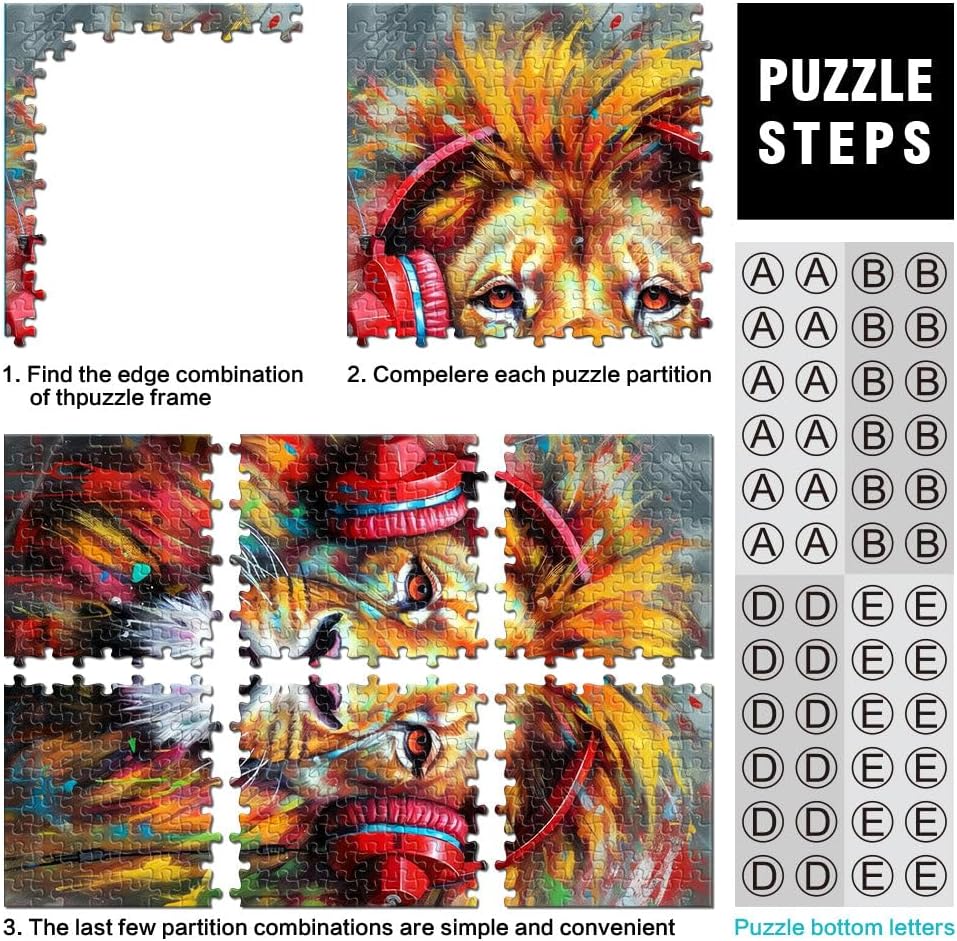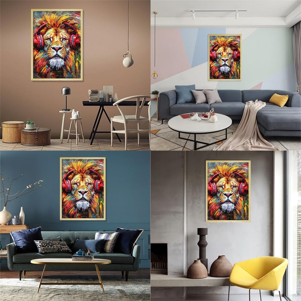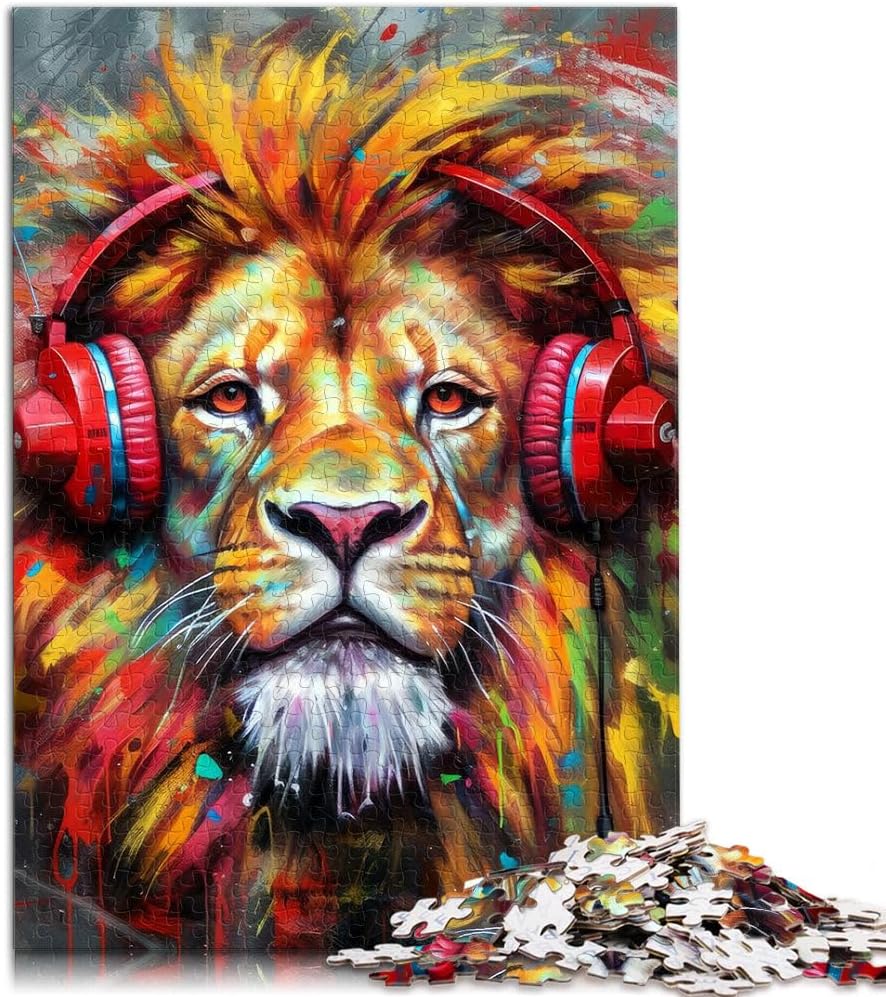 Puzzle da 2000 pezzi per adulti Leone con le cuffie Fatto di cartone per età pari o superiore a 14 anni Difficile e impegnativo Decorazioni e regali unici per la casa misurare:70x100cm