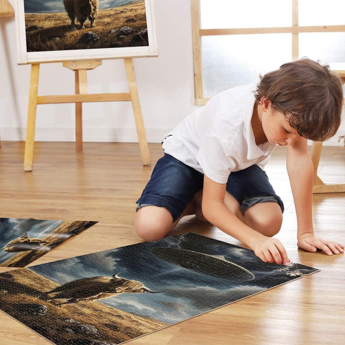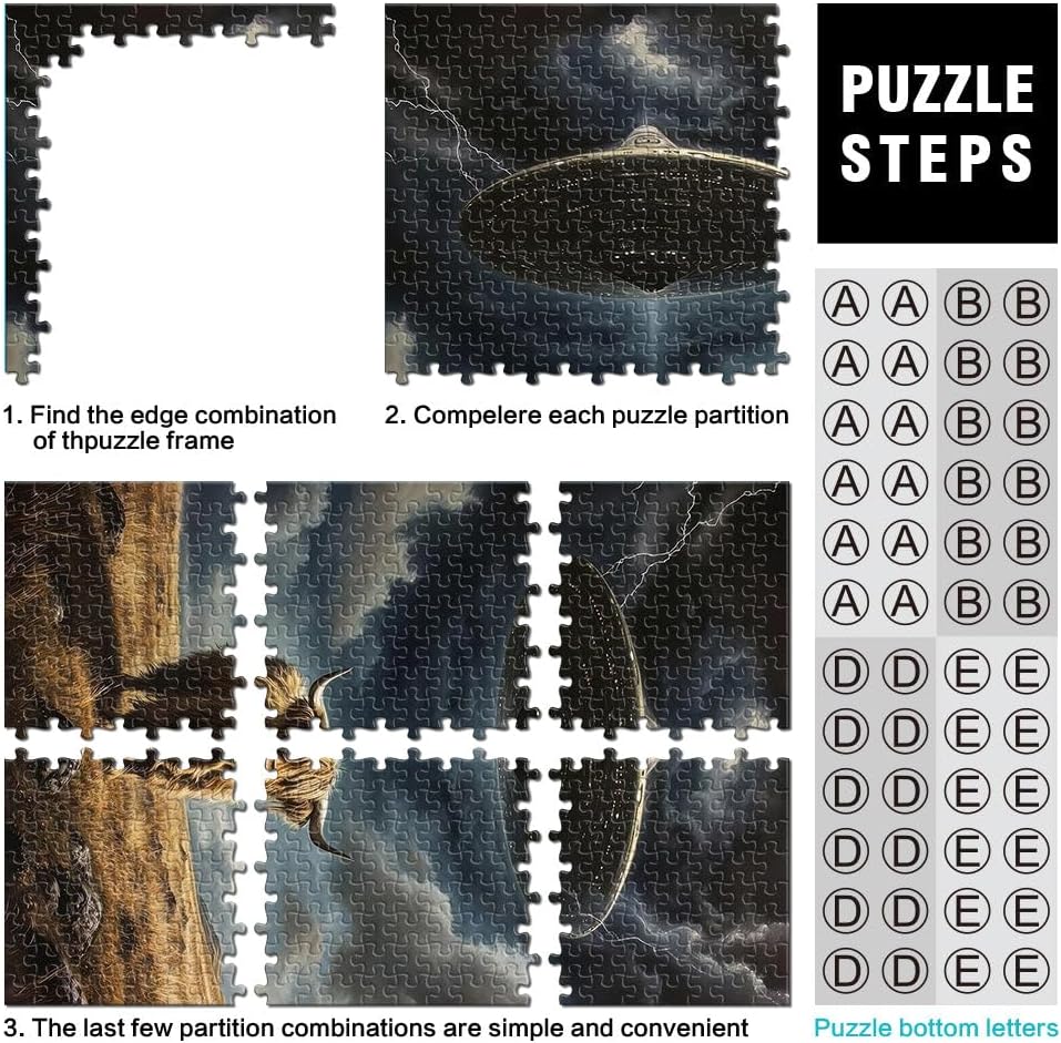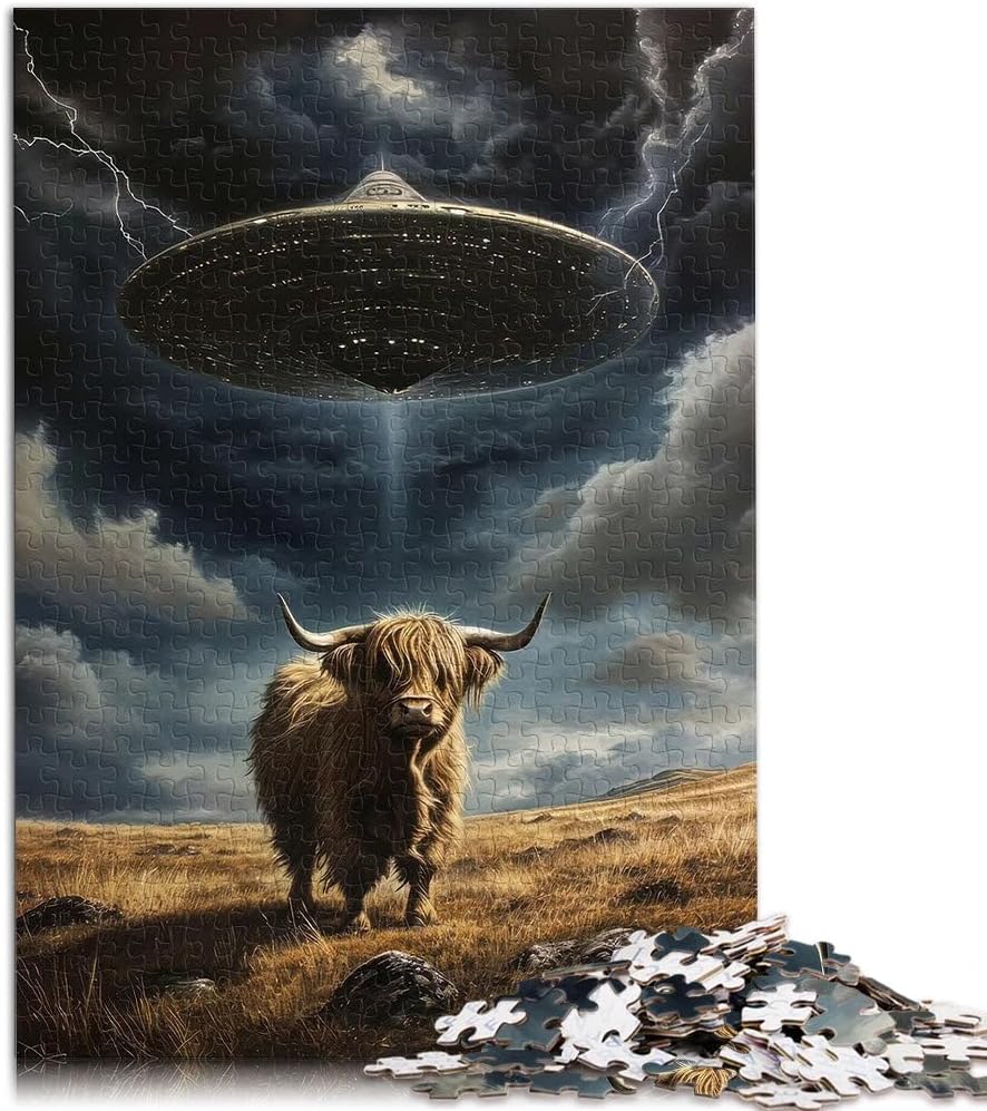 Puzzle da 2000 pezzi per adulti Rapimento UFO di una mucca delle Highlands Fatto di cartone per età pari o superiore a 14 anni per la decorazione della casa Idee regalo misurare:70x100cm