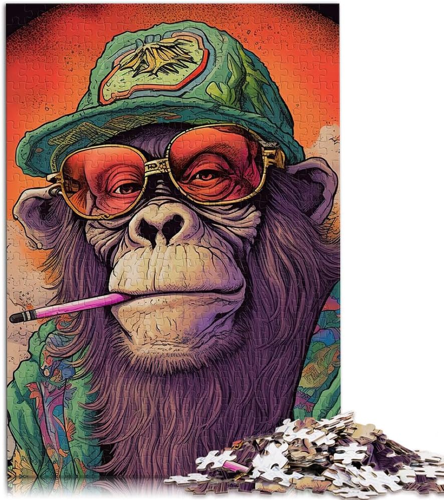 Puzzle da 2000 pezzi per adulti Scimmia della marijuana Fatto di cartone Adatto a partire dai 14 anni Difficile da completare ma divertente e umoristico regalo di compleanno misurare:70x100cm