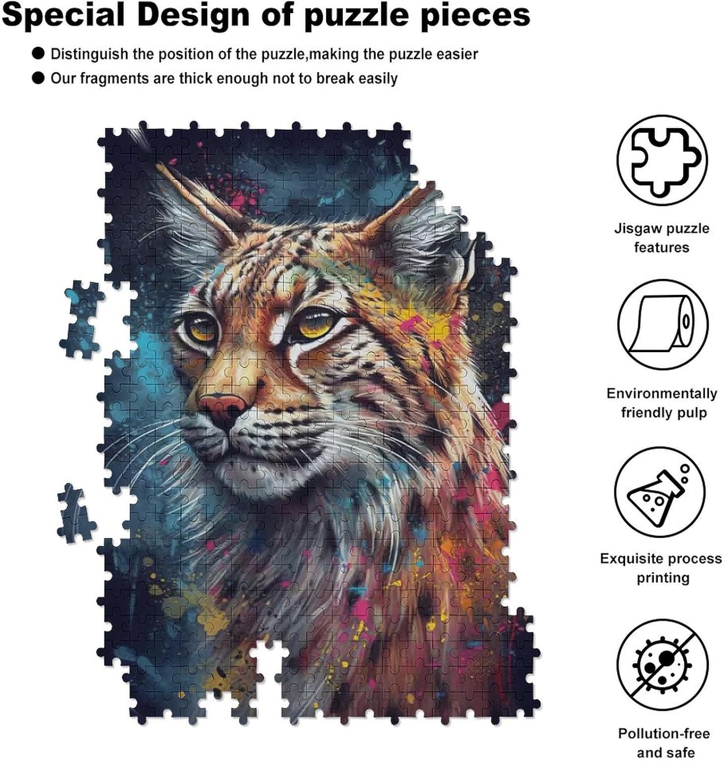 【Design unico】Ogni pezzo del puzzle è unico e tagliato senza ripetizioni. Pertanto è impossibile che il puzzle venga installato nella posizione sbagliata. Ogni pezzo del puzzle è splendidamente realizzato e si adatta perfettamente ai pezzi vicini. Per un gioco più semplice. Il retro del puzzle è diviso in diverse aree e contrassegnato da lettere, che possono aiutarti a ordinare rapidamente i pezzi del puzzle prima di iniziare il gioco e migliorare l'efficienza. 【Materiale di alta qualità】 Il puzzle è realizzato in legno di tiglio di alta qualità ed è realizzato con una tecnologia di stampa avanzata di alta qualità. È atossico, ecologico e riciclabile e offre molteplici opzioni di dimensioni: 42 x 30 cm (300 pezzi), 55 x 41 cm (500 pezzi), 78 x 53 cm (1000 pezzi). 【Vantaggi del gioco dei puzzle】 I puzzle forniscono ulteriore autoesame e attenzione, possono stimolare efficacemente il pensiero delle persone, allenare il pensiero, il giudizio e la pazienza, stimolare il cervello, calmare la mente e indurre uno stato di meditazione creativa. Consigliato per adulti e bambini dai 12 anni in su. 【Regalo perfetto】 I giocattoli puzzle in legno sono regali perfetti per compleanni, Natale e Ringraziamento. Trascorri dei momenti divertenti in famiglia insieme alla tua famiglia attraverso il divertimento dei puzzle per adulti e bambini. Questo puzzle è il regalo perfetto per la famiglia e gli amici. 【Servizio perfetto】 In caso di dubbi, non esitate a contattarci. Risolveremo il problema entro 24 ore. Assicurati di essere soddisfatto dei nostri prodotti e servizi.. Buon puzzle, buon divertimento.