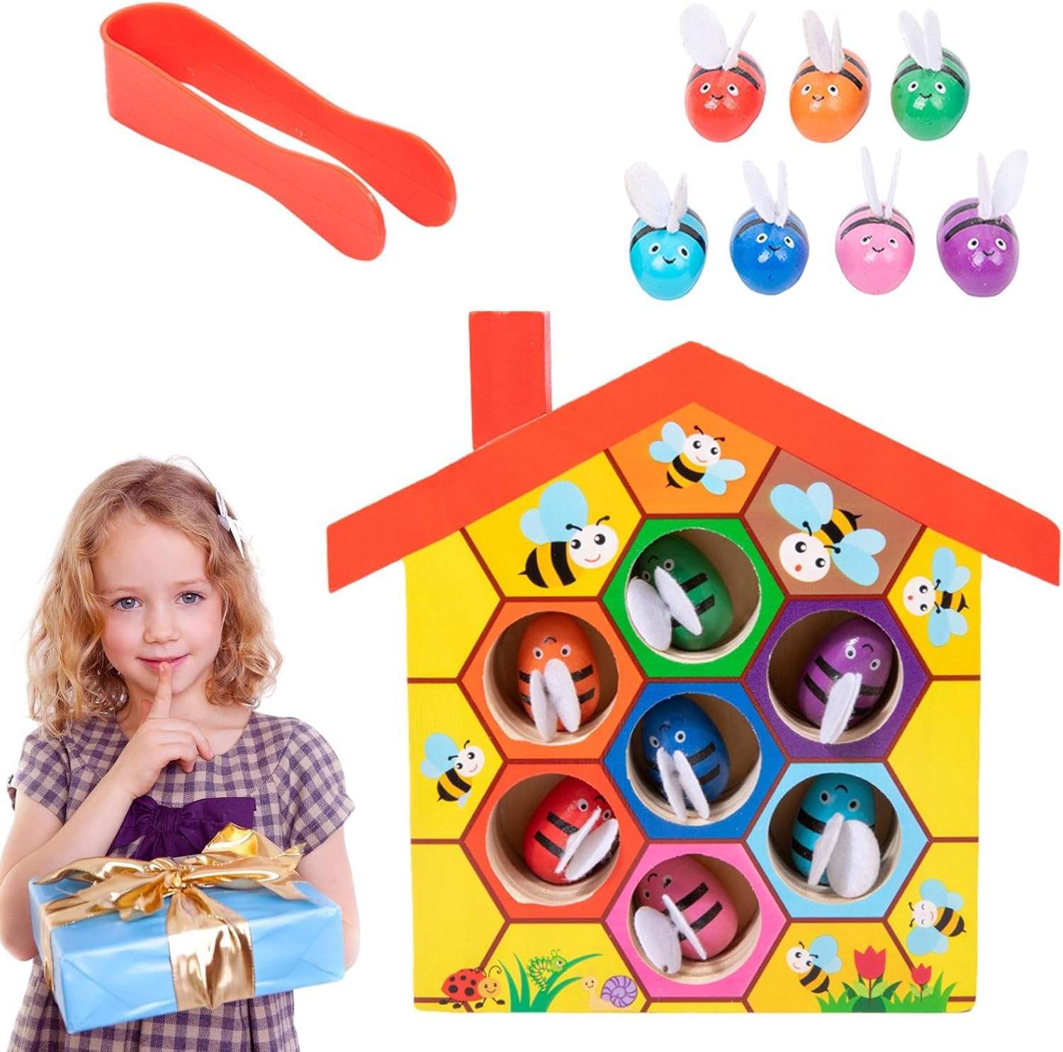 Aumenta le capacità motorie: sviluppare la destrezza dei bambini e le abilità cognitive manipolando le pinze di legno per abbinare le con il loro alveare corrispondente. Migliora il coordinamento degli occhi e il riconoscimento del colore per un'esperienza educativa divertente. Classificazione del colore: favorire la capacità dei bambini di riconoscere i colori e migliorare le abilità matematiche attraverso questo gioco colorato. Impara a abbinare e ordinare le colorate aumentando le abilità cognitive e motorie. Build di alta qualità: goditi ore di intrattenimento sicuro e robusto con il nostro gioco Hive Ape Blamp. I bordi arrotondati e il materiale ecologico lo rendono per le piccole mani. Inoltre, i morsetti e le innocui significano che puoi rilassarti mentre giocano. Presenti ideali per bambini: sorprendi i tuoi bambini con questo gioco Hive di morsetti ispirato a progettato per i bambini di età pari o superiore a 36 mesi. Guardali sviluppare abilità critiche come il riconoscimento del colore, il coordinamento degli occhi a mano e le belle capacità motorie mentre manipolano gli alveari e le pinzette. Divertimento educativo: con il gioco 'alveare del morsetto, i bambini in età prescolare saranno entusiasti di catturare le colorate e abbinarle con l'alveare usando il morsetto. Questo giocattolo è orientato ai giocattoli di apprendimento in età prescolare che iniziano interesse e curiosità.