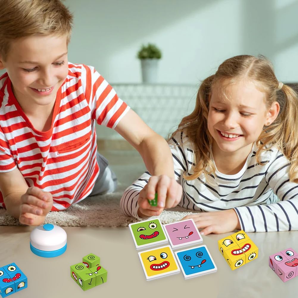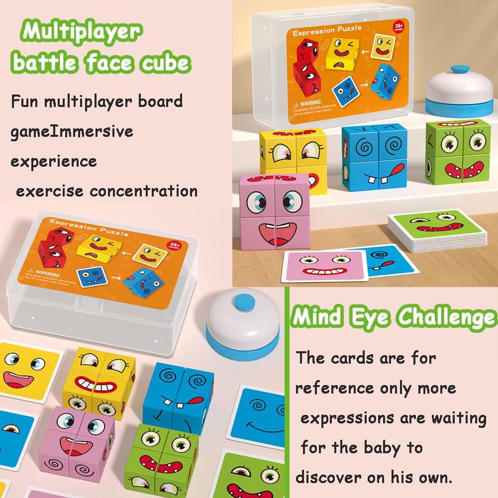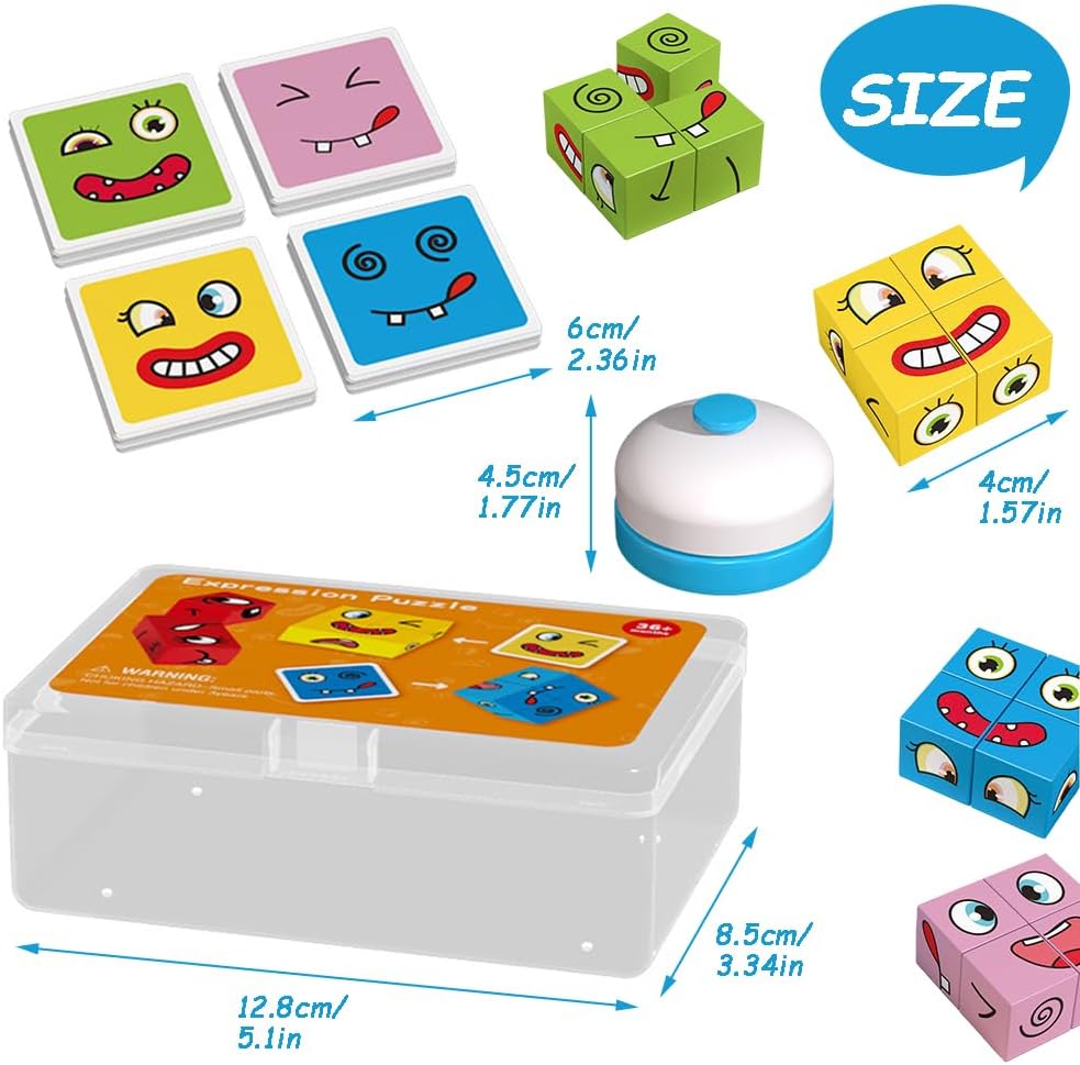 Il set include: Riceverete i blocchi da costruzione in legno Expression Puzzle, che includono 40 pezzi di carte faccia impegnative + 16 blocchi di legno con espressione + 1 campana di sfida + scatola di metallo. Ogni carta emoji non è ripetitiva e i livelli sono impegnativi e abbondanti! Le dimensioni della scatola sono 11,5*11,5*4,5 cm, compatte e facili da trasportare. Qualità eccellente: I nostri puzzle di espressione in legno sono realizzati in legno di alta qualità, i bordi sono stati levigati innumerevoli volte, lisci e privi di bave, e i blocchi sono levigati in modo circolare. La superficie è rivestita con vernice a base d'acqua liscia e sicura, inodore e atossica, perfetta per far giocare i bambini! Doppio divertimento: Il nostro Puzzle Building Cubes Giochi Interattivo utilizza facce fantasma simpatiche e divertenti, cambi di espressione simpatici e divertenti, combinazioni interessanti e divertenti, ricche e varie, per stimolare il desiderio del bambino di esplorare e coltivare l'interesse per l'apprendimento nel divertimento! Molteplici modi di giocare: le nostre espressioni di gioco di puzzle di corrispondenza hanno una varietà di modi di giocare, adatto per una singola persona a giocare, ma anche adatto per più di una persona a giocare insieme, con i compagni tra la velocità di pk, interazione divertente, i bambini osservano il modello sulla scheda, l'uso delle mani dei blocchi per completare la costruzione, il gioco per promuovere l'amicizia e l'interazione! Gioco educativo: la puzzle di espressione in legno deve mettere alla prova i riflessi e la coordinazione occhio-mano dei bambini, che sono immersi nel gioco, pensando a come metterlo insieme velocemente, esercitando la concentrazione dei bambini, coltivando il pensiero e i riflessi e migliorando la coordinazione occhio-mano nel bel mezzo del divertimento!