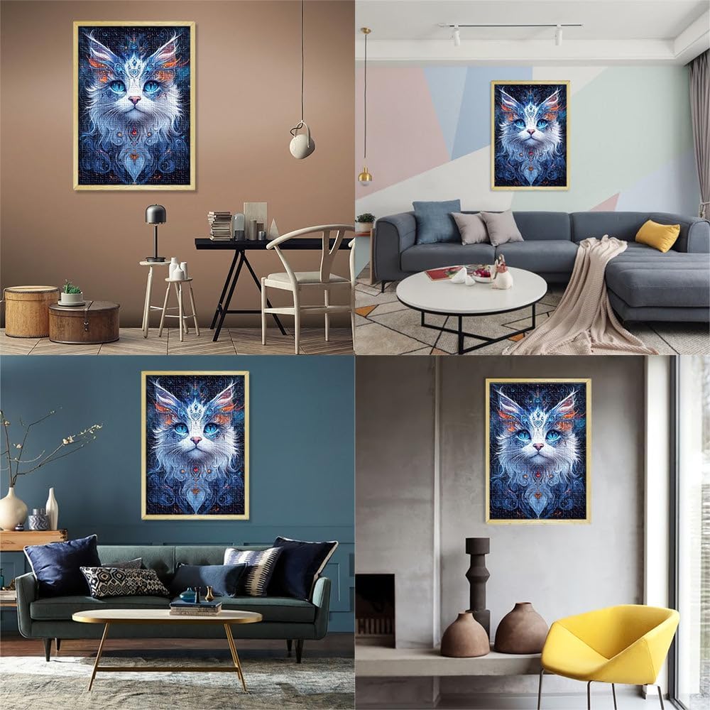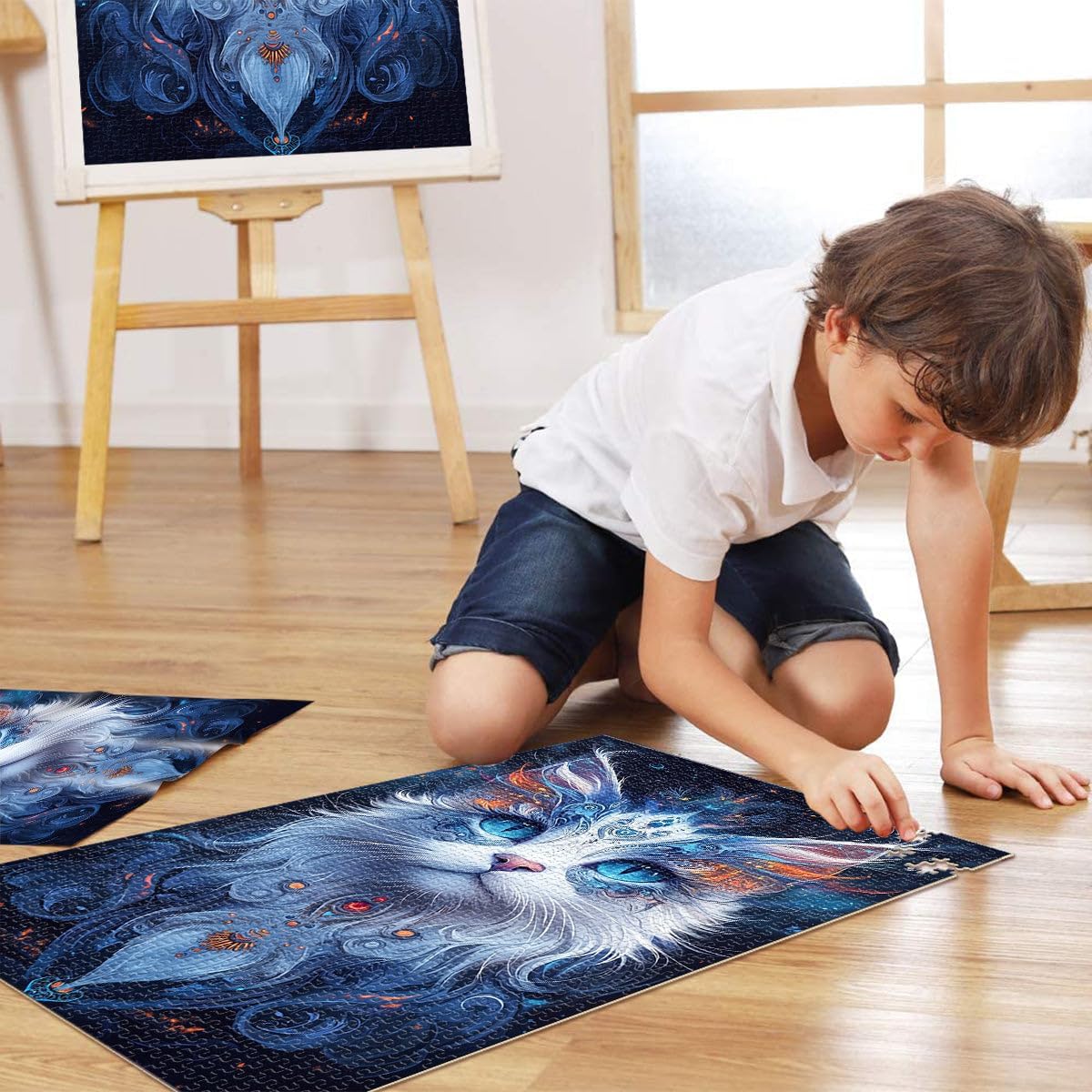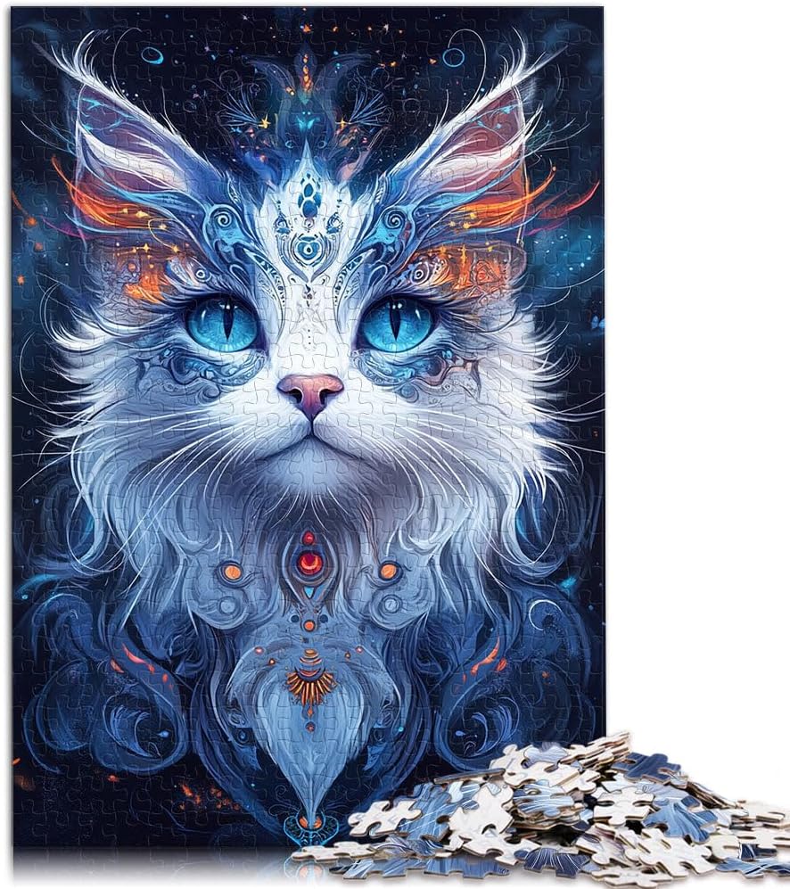 Puzzle difficile per adulti 1000 pezzi Gatto bianco con gli occhi azzurri Fatto di legno per età pari o superiore a 14 anni gioco di sfida unico Giochi per famiglie, regali di Natale e compleanno