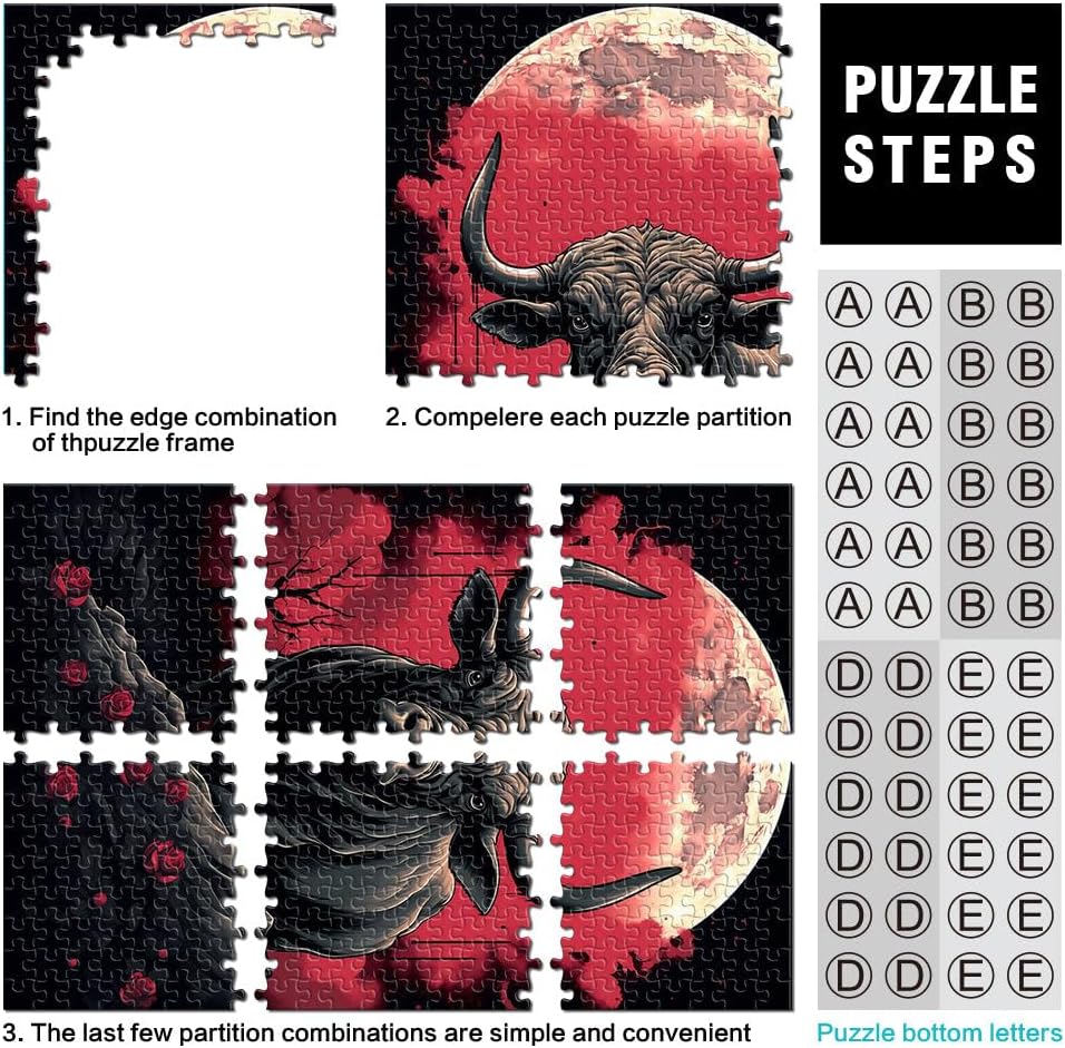 Puzzle difficile per adulti 1000 pezzi Il Toro e la Luna Fatto di legno per età pari o superiore a 14 anni Gioco rompicapo Giochi Giocattoli Regalo misurare:50x75cm