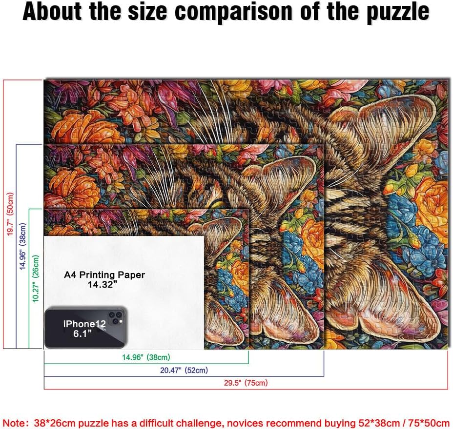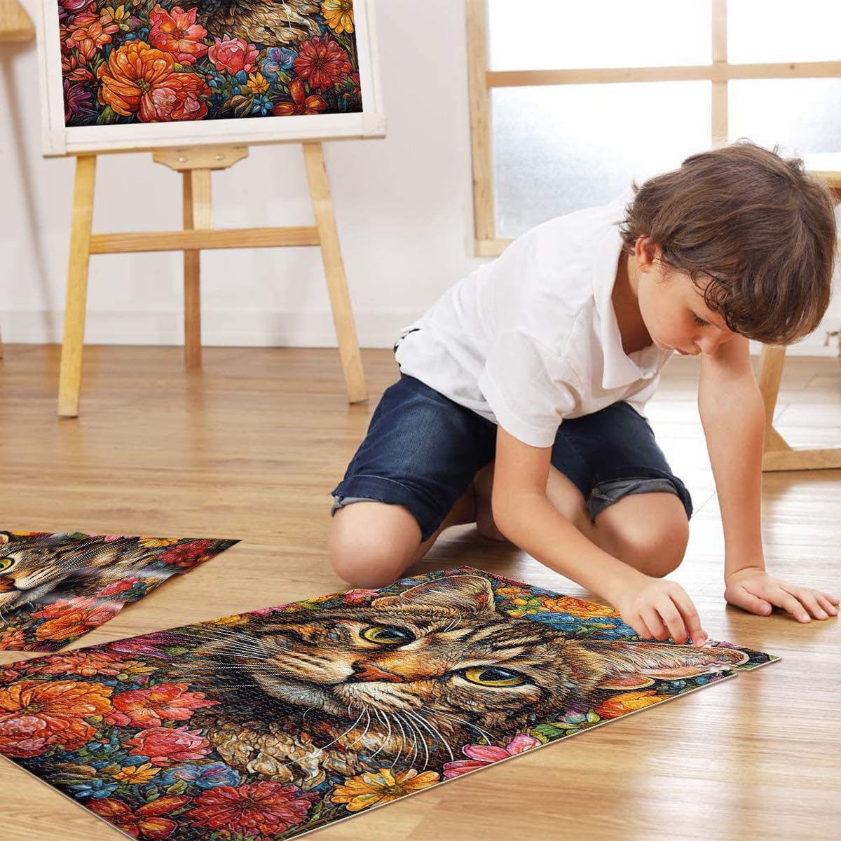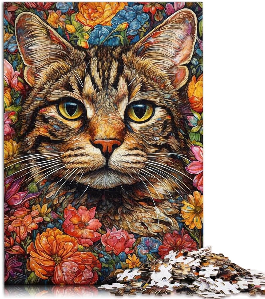 Puzzle difficile per adulti 2000 pezzi Gatto floreale Fatto di cartone per età pari o superiore a 14 anni per la decorazione della casa Idee regalo misurare:70x100cm