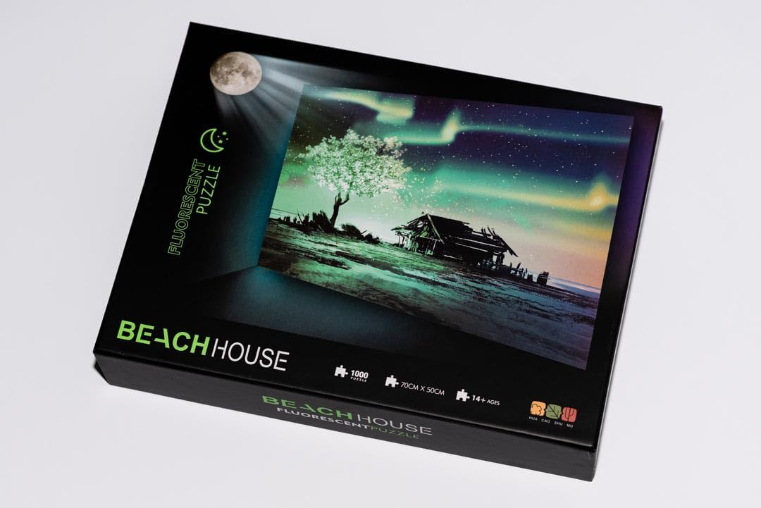 1000 pezzi: puzzle fluorescenti per adulti. Si illumina al buio: atmosfera magica grazie all'effetto fluorescenza. Vari design: spazio, fuochi d'artificio, casa al mare. Materiale: cartone resistente di alta qualità. Valore educativo: promuove la concentrazione e il pensiero spaziale. Rilassamento: Ideale per ridurre lo stress. Regalo perfetto: per gli appassionati di puzzle e natura.