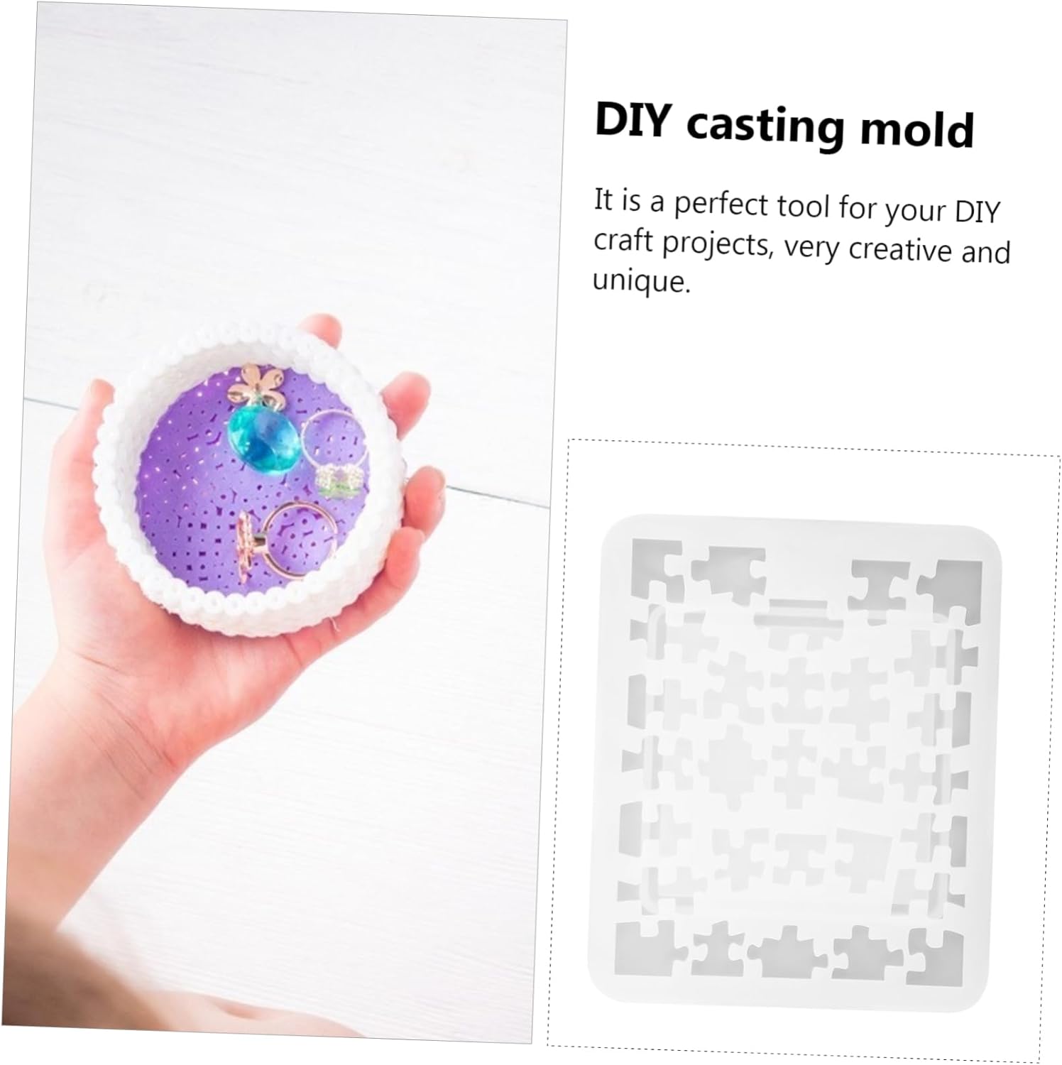 Puzzle epossidico: realizzato in silicone di qualità, flessibile, riutilizzabile e non deformato. Stampo per puzzle artigianale: realizzato in silicone, con eccellente elasticità ed eccellente elevata resistenza allo strappo. Ciondolo portachiavi: puoi aggiungere pigmenti, coloranti in resina e incorporare diversi tipi di abbellimenti o riempitivi. Pezzo del puzzle: dopo essersi assicurati che la resina sia completamente indurita, il foglio di resina può essere espulso semplicemente ruotando lo stampo flessibile del sottobicchiere in resina. Stampo in silicone artigianale: puoi aggiungere pigmenti, fiori secchi o qualsiasi piccola decorazione che ti piace per realizzare oggetti unici.