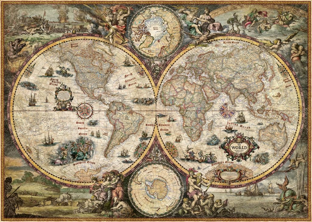 Heye hat eine Reihe optisch ansprechender Weltkartenseparationen im Portfolio. Abseits dieser Nische sprechen mich ihre Motive nicht an, dies zumindest limitiert die Summe der Puzzleneuerwerbungen. Der Bereich Weltkarte, deckt von sehr klassisch bis fantasievoll vieles ab. Hier lohnt sich der Blick. Die wichtigsten Punkte vorweg, Puzzle vollständig, Beutel sauber verschweisst und der Frust war sehr überschaubar ^^. Ein gutes Legewerk. Nun in die Tiefe. Die Teile sauber in einem Beutel verschweisst, relativ wenig Schnittstaub. Dem Set liegt ein ansprechendes Poster des Motives bei, welches man als Legehilfe verwenden, aber auch per se im Rahmen an die Wand verbringen kann, wenn einem das Motiv gefällt, man aber die wilden Puzzlestanzungen nicht leidet. Stanzungen und Nasen sind gut. Teile passen solide, wackeln wenig im Verbund und die Schnittstücke sind recht unique, also kaum Zweifel, ob irgendwas richtig liegt. Einzig im Rand, durch das stringente Design manchmal fraglich, diesen habe ich allerdings einfach ganz zum Schluss um das Puzzle herum angelegt. Die Kartonstärke befindet sich im soliden Mittelmaß. Hier hätte man ein auf zwei Millimeter mehr andenken können. Der Druck ist qualitativ ähnlich. Gut aber nicht perfekt. Auf die große Fläche nicht gestochen scharf, aber gut erkennbar. Der Schwierigkeitsgrad ist nicht ganz ohne. Durch die große Fläche verschwimmen viele Bereich, die im Gesamtbild viel Variation aufzuweisen scheinen. Durch die vielen Unterbrechungen, ist es auch nicht ganz einfach, zumindest die kreisrunden Elemente sicher zu legen und die Bereiche zu den Ecken hin, ziehen sich zum Ende hin ganz gut. Ich für meinen Teil, habe mit den runden Elementen begonnen, die Weltkarte gefüllt (solide Geographiekenntnisse hooray ^^), zu den Ecken hin gefüllt und zum Ausklang den Rand angelegt. So hat man einen recht soliden Flow und kleine Erfolgserlebnisse in Form von Fläche halten einen auf Kurs. Dies aber jedem überlassen, gleich, wie er mag. Zusammenfassend, einige Stunden, hat es mir Freude bereitet, ich war nie wirklich frustriert, die Qualität ist gut, wenn auch nicht perfekt und für den gesteigerten Anspruch, ist es allemal den Preis wert. Eine gute Alternative für schöne Motive.