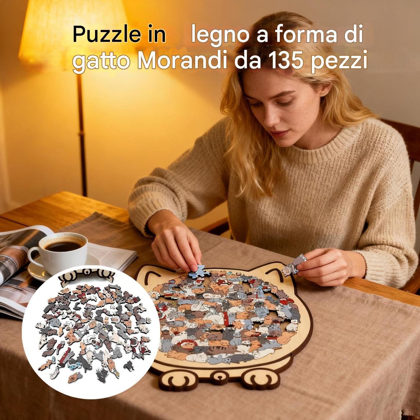 Puzzle in legno ecologico: realizzato con materiali in legno ecologici, questo puzzle in legno per gatti offre un uso duraturo e mantiene la sua qualità nel , consentendo agli appassionati di risolverlo ripetutamente e di rilassarsi dopo intense giornate lavorative in rilassanti ambienti interni Esperienza di puzzle artistico: il puzzle di gatto in legno mostra deliziose forme feline e dettagli precisi su zampe e code, offrendo un'esperienza gratificante che affina la concentrazione, incoraggia la perseveranza e integra le impostazioni 'arredamento della casa Puzzle con gatti pacifici: il puzzle con gatti a forma di animale funge da attività per alleviare lo stress, promuovendo il rilassamento per gli amanti dei gatti attraverso un gioco calmo e concentrato, rendendolo ideale per rilassarsi dopo il lavoro e creare un'atmosfera rilassante in qualsiasi ambiente Puzzle che aggiunge calore: il puzzle in legno è realizzato per migliorare l'estetica della casa, trasformando il puzzle finito in un'accattivante decorazione per mensola a muro che aggiunge calore e carattere al spazio, fungendo da opzione regalo premurosa e migliorando l'atmosfera di ogni stanza con il suo fascino artistico Estetica del design elegante: la dei colori tenui del puzzle in legno del gatto completa i suoi pezzi lisci e , offrendo un'esperienza di assemblaggio artistico rilassante, ideale per rilassarsi dopo il lavoro o coinvolgere i bambini in giochi fantasiosi durante il in famiglia