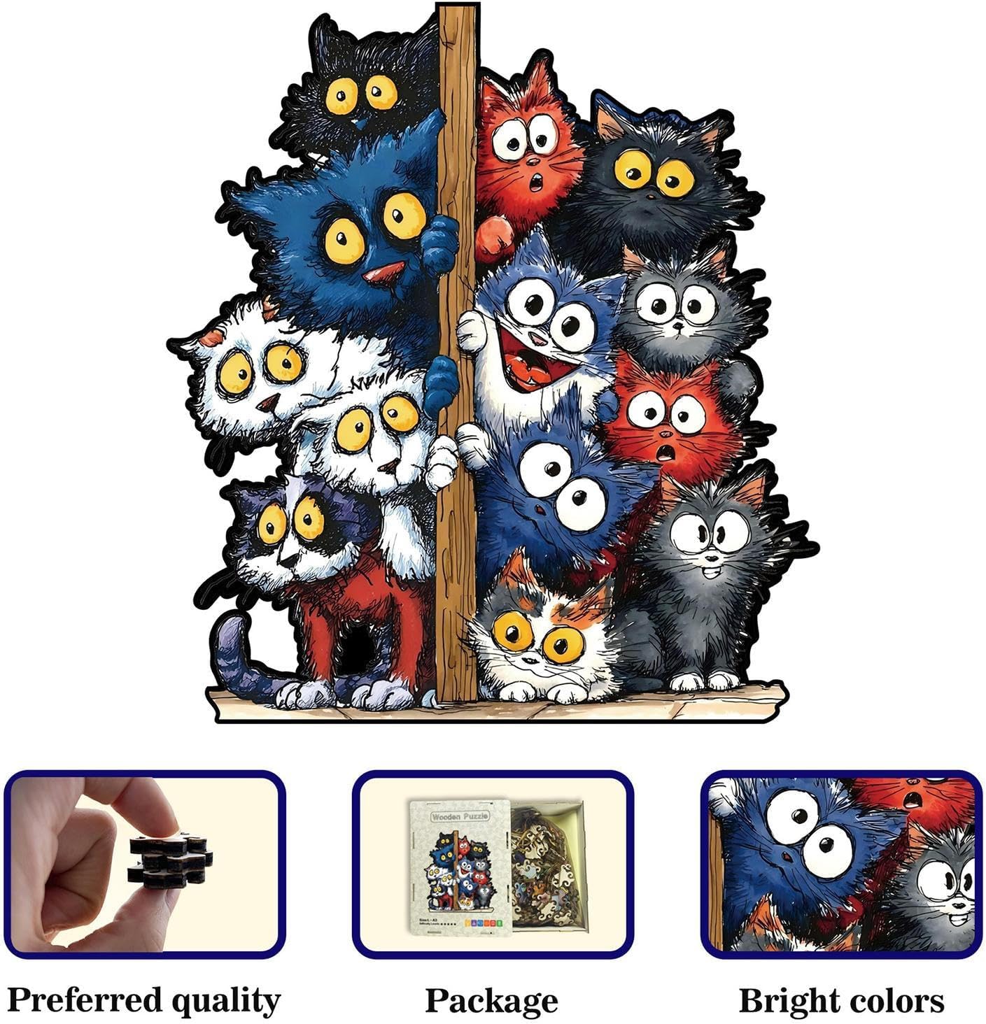Accattivante sfida cerebrale: questo puzzle in legno con gatti presenta un puzzle irregolare che rafforza il ragionamento spaziale e aiuta a mantenere la concentrazione prolungata per diverse ore. Offre un'esperienza calmante e arricchente a livello mentale, perfetta per rilassarsi e ricaricarsi durante il tempo libero. Miglioramento della stanza stilizzata: questo puzzle in legno funziona come un accento decorativo che trasforma spazi semplici in spazi visivamente accattivanti, fungendo anche da elemento di scaffale di tendenza che completa stili domestici moderni o tradizionali. Ideale per soggiorni accoglienti o spazi di lavoro creativi, migliora l'estetica generale con il suo design dimensionale, apportando senza sforzo un tocco di raffinatezza e calore a qualsiasi ambiente interno. Divertente assemblaggio consapevole: il puzzle del gatto presenta un processo di assemblaggio consapevole, che promuove la coordinazione occhio-mano e fornisce un'attività calmante che stimola la concentrazione e un gratificante senso di realizzazione, perfetto per rilassarsi dopo una giornata impegnativa o condividere tempo di qualità con la famiglia, incoraggiando un'esperienza di gioco calma e arricchente. Puzzle per famiglie: progettato in legno naturale con texture lisce e bordi arrotondati per una sicurezza ottimale, questo puzzle in legno per gatti presenta un incastro affidabile per un facile utilizzo ripetuto. Arricchisce i momenti conviviali durante le celebrazioni festive o il tempo libero del fine settimana, fornendo un'esperienza di gioco coinvolgente adatta a tutta la famiglia. Design audace della parete: questo puzzle di gatti in legno presenta una forma felina realistica combinata con un design con sfumature di colore e opere d'arte 3D a strati, creando un effetto visivo sorprendente come una decorazione murale audace. Ispira apprezzamento artistico nel tuo ufficio a casa o in laboratorio, garantendo al contempo funzionalità e fascino estetico per vari ambienti, con un'autentica silhouette di gatto e dettagli artistici che ne aumentano il fascino per