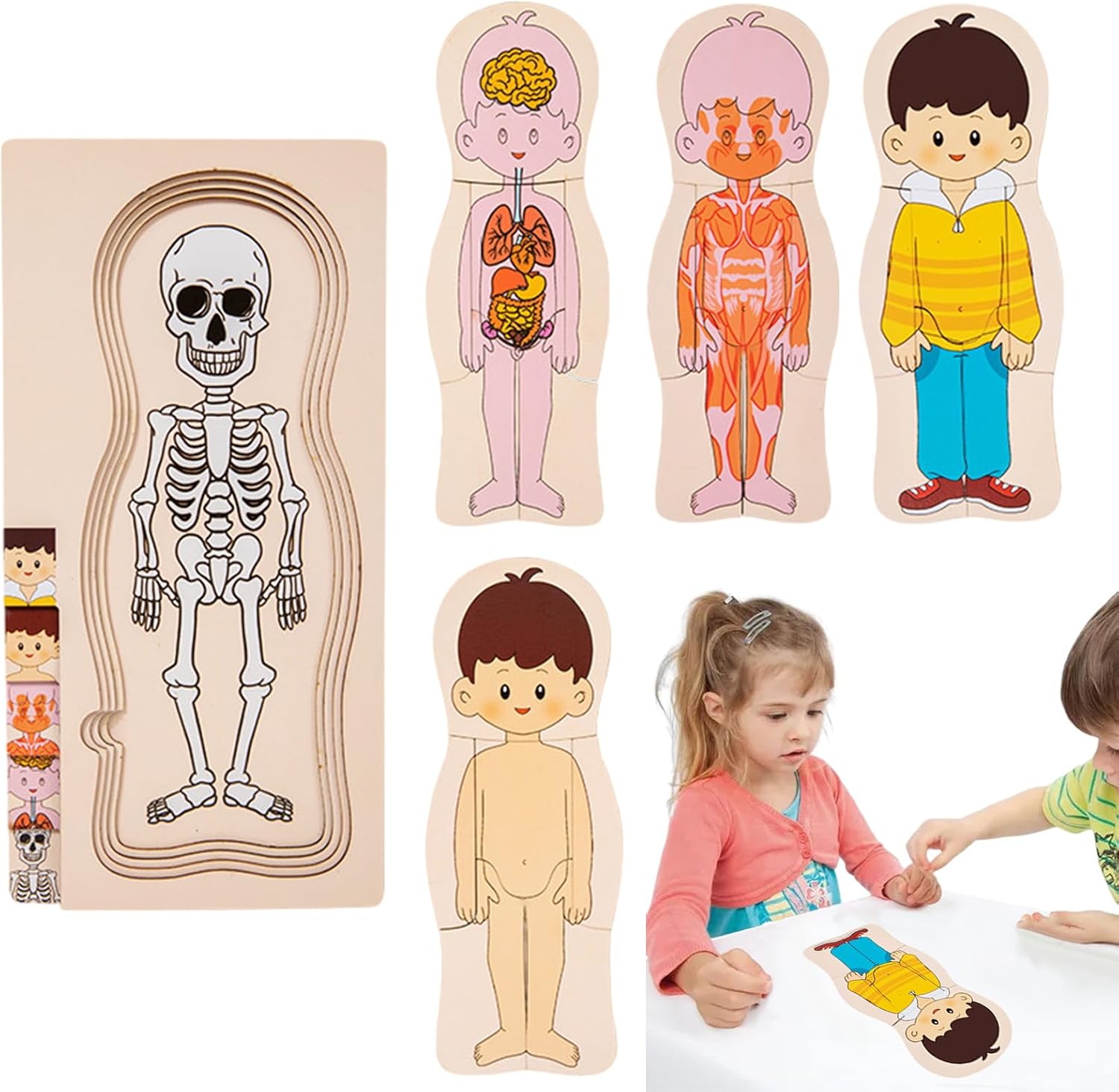 Apprendimento completo: con questo puzzle i bambini comprendono la struttura di base del corpo e approfondiscono i suoi segreti, scoprono le complesse relazioni tra le sue parti e acquisiscono solide basi nella biologia. Divertimento cognitivo: con tacche facili da impugnare, questo puzzle per bambini consente un accesso e una disposizione dei pezzi senza sforzo, incoraggiando i bambini a imparare in modo indipendente. Promuove la risoluzione dei problemi: mentre apprendono l'anatomia umana, migliorano anche le loro capacità di risoluzione dei problemi, la coordinazione occhio-mano e le loro funzioni cognitive. Sicuro e innocuo: questo puzzle del corpo umano è realizzato con parti in legno resistenti e presenta bordi lisci per un gioco sicuro e innocuo. La sua struttura robusta promette una lunga durata e rende l'apprendimento divertente ed emozionante. Ampiamente usato: uno strumento entusiasmante ed educativo che i genitori possono utilizzare a casa con i propri figli. È anche uno strumento didattico versatile per gli insegnanti a scuola, che migliora la comprensione degli studenti con un'ampia gamma di applicazioni.