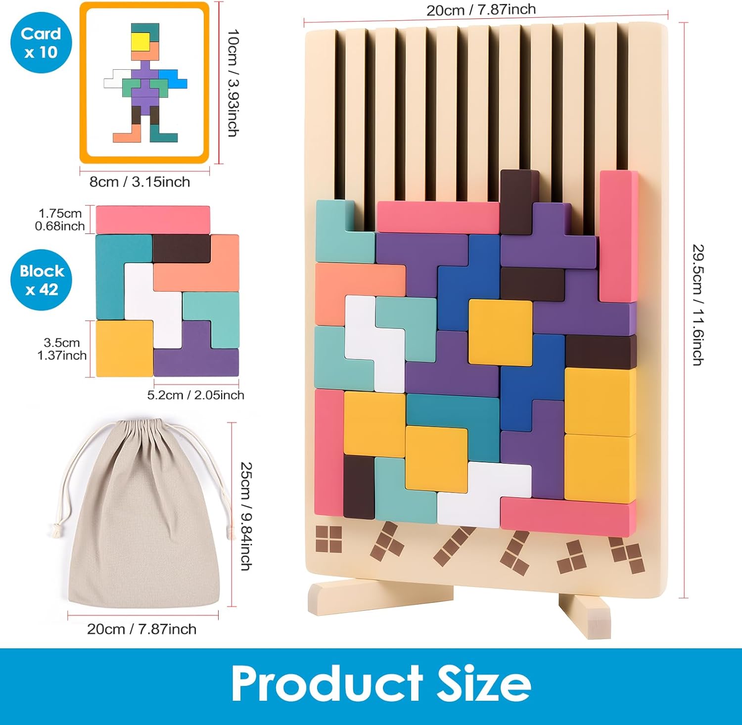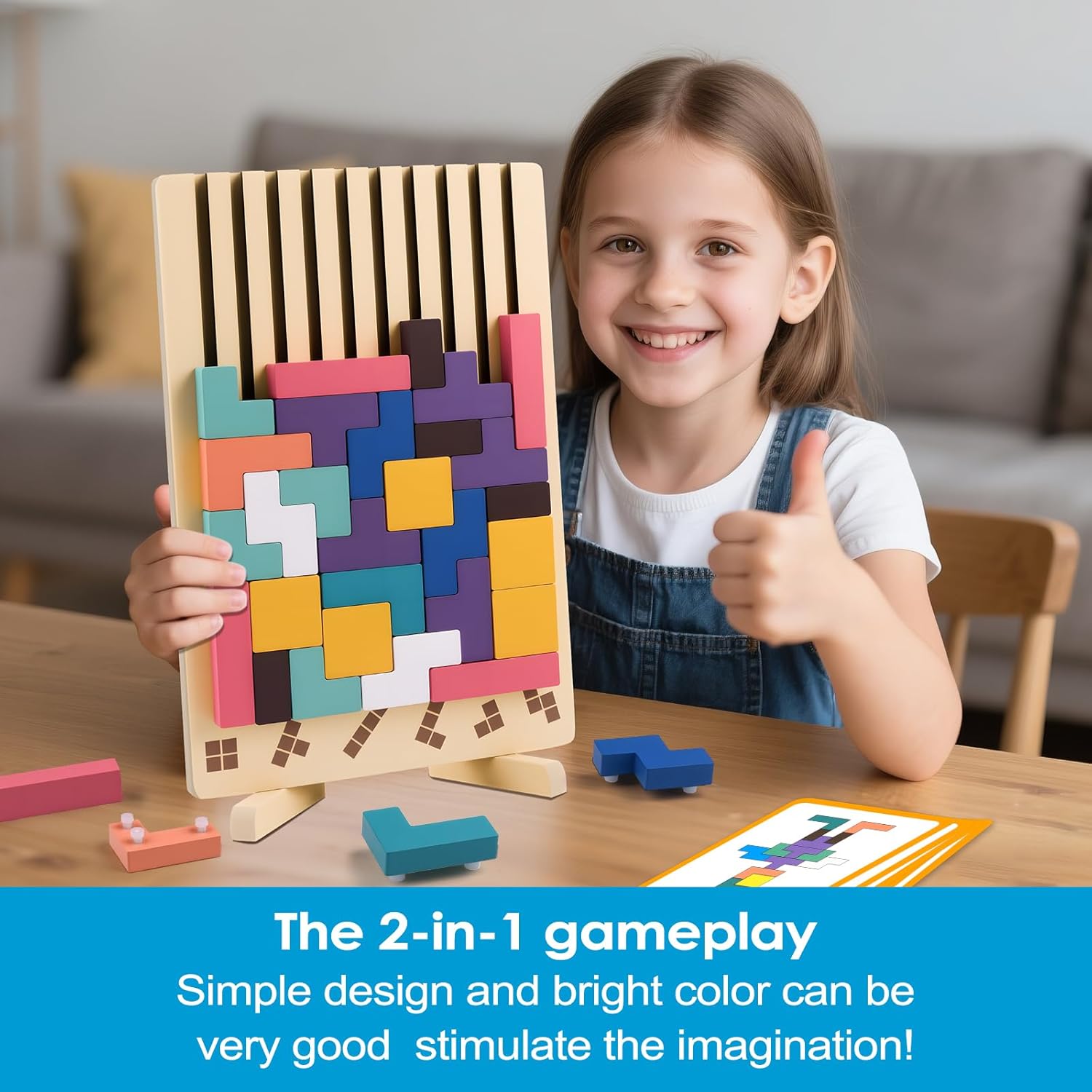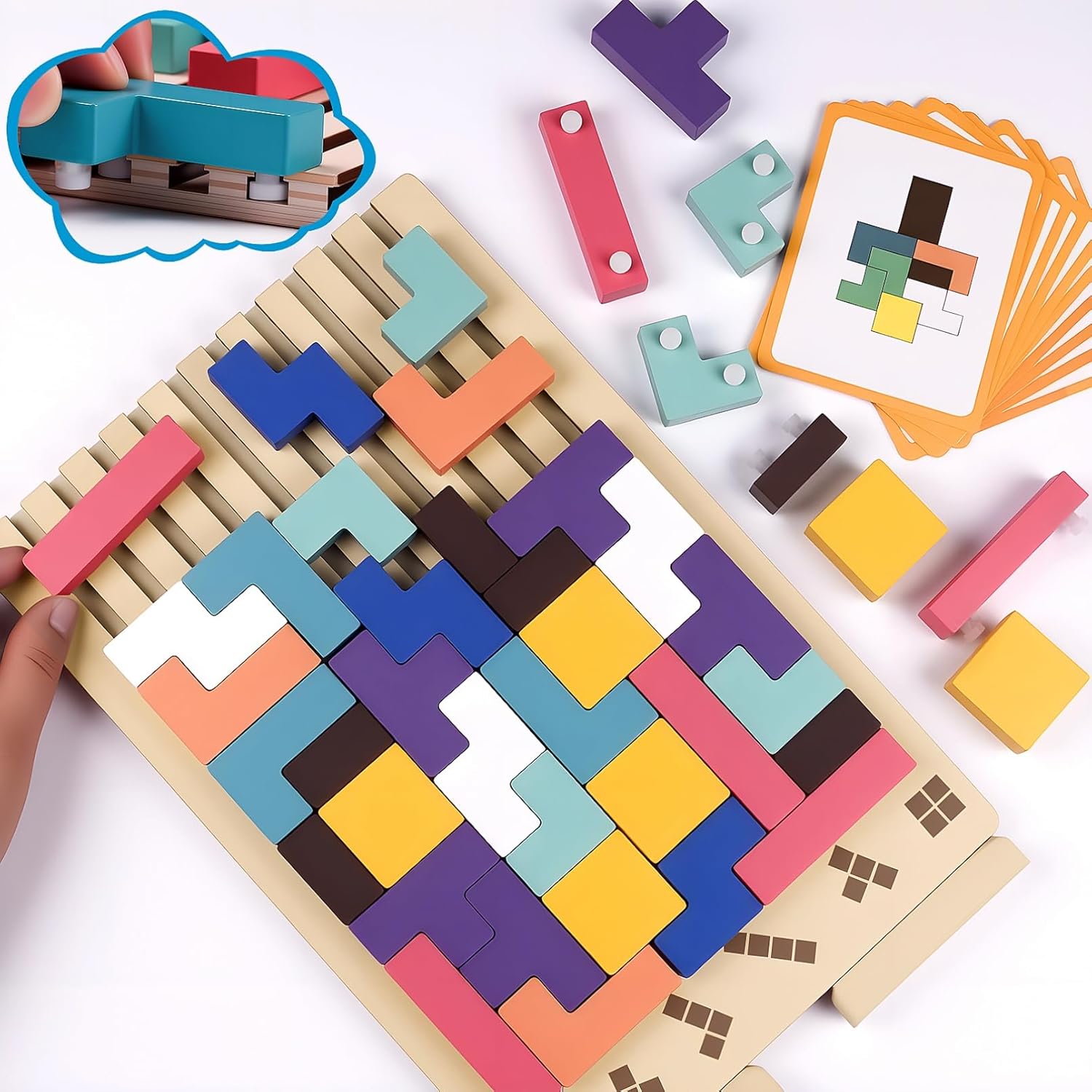 【 Divertimento Educativo Montessori 🧩 】– Questo puzzle in legno stimola pensiero logico, coordinazione e concentrazione, rendendo l’apprendimento un gioco appassionante. 【 Legno di Alta Qualità 🌳 】– Realizzato in legno resistente ed ecologico con bordi lisci per garantire sicurezza e lunga durata. 【 Sollievo dallo Stress per Tutti 🎮】 – Non solo per bambini: questo puzzle ispirato al Tetr è anche un rilassante passatem, ideale per staccare la mente. 【 Gioco per la Famiglia 👨👩👧👦 】– Con 10 carte sfida incluse, diventa un gioco di gruppo perfetto per serate in casa, viaggi o pomeriggi in famiglia. 【 Idea Regalo Perfetta 🎁】 – Un dono originale per compleanni, Natale o altre occasioni, adatto a bambini, ragazzi