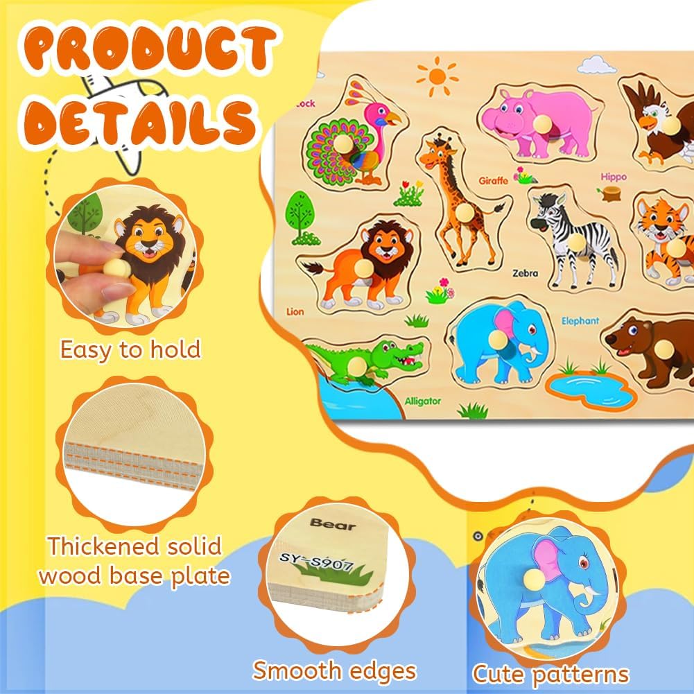 【Molteplici funzioni educative precoci】Questo giocattolo puzzle in legno con animali della foresta sviluppa appieno le capacità motorie fini, la logica matematica, l'immaginazione e l'attenzione attraverso colori, forme, cognizione animale e modalità basate su scene, aiutando lo sviluppo dell'apprendimento precoce dei bambini. 【Sicurezza e durata】Utilizzo di legno naturale, tavola ultra spessa con angoli arrotondati, senza sbavature e inodore; speciale struttura a scatto per evitare cadute, dimensioni ridotte adatte alle manine dei più piccoli, tenendo conto della sicurezza e della resistenza alle cadute. 【Esperienza di progettazione scientifica】Puzzle singolo con impugnatura antiscivolo, motivi colorati, forma tridimensionale, stimola l'interesse sensoriale; vari puzzle possono non solo portare divertimento, ma anche migliorare l'intelligenza, l'immaginazione, la creatività e le capacità pratiche dei bambini. 【Artefatto interattivo genitore-figlio】Genitori e figli costruiscono insieme, comunicano e interagiscono in collaborazione, condividono la gioia del successo, rafforzano il legame emotivo e creano momenti caldi e indimenticabili tra genitori e figli. 【Regalo ideale】 I nostri puzzle in legno per bambini sono perfetti come regali di compleanno, di festa o di Natale per bambini, neonati e bambini in età prescolare, consentendo loro di trascorrere momenti meravigliosi in famiglia e di creare un'infanzia colorata per i propri figli.