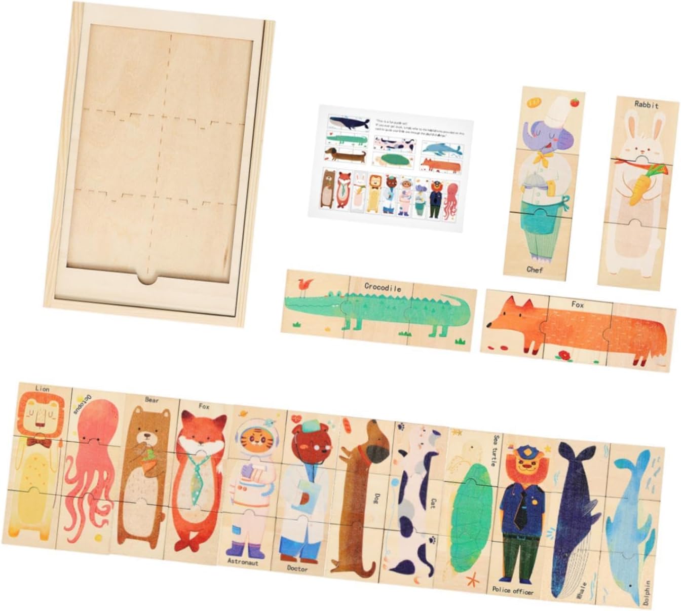 【Regalo per bambini piccoli】: ideale per bambini dai 3 ai 6 anni, questo set di giocattoli è un regalo meraviglioso che incoraggia l'interazione genitore-figlio consentendo l'espressione attraverso i 【Set di abbinamenti】: a differenza dei puzzle tradizionali, questo puzzle consente ai bambini di mescolare e abbinare abiti de animali in base alle loro preferenze 【Giocattolo educativo e coinvolgente】: caratterizzato da colori vivaci e molteplici opzioni di assemblaggio, questo giocattolo per cambiare i vestiti aiuta a sviluppare l'immaginazione e le capacità di pensiero dei bambini. Migliora la creatività, la coordinazione occhio-mano e la sensibilità al riconoscimento dei colori. 【Materiale di qualità】: Realizzato in legno, il Dress up Puzzle include una robusta scatola di gioco in legno 【Facile da usare】: i giocattoli in legno per l'ordinamento sono semplici da imparare e da usare. I bambini devono solo posizionare i pezzi del puzzle negli slot corrispondenti.