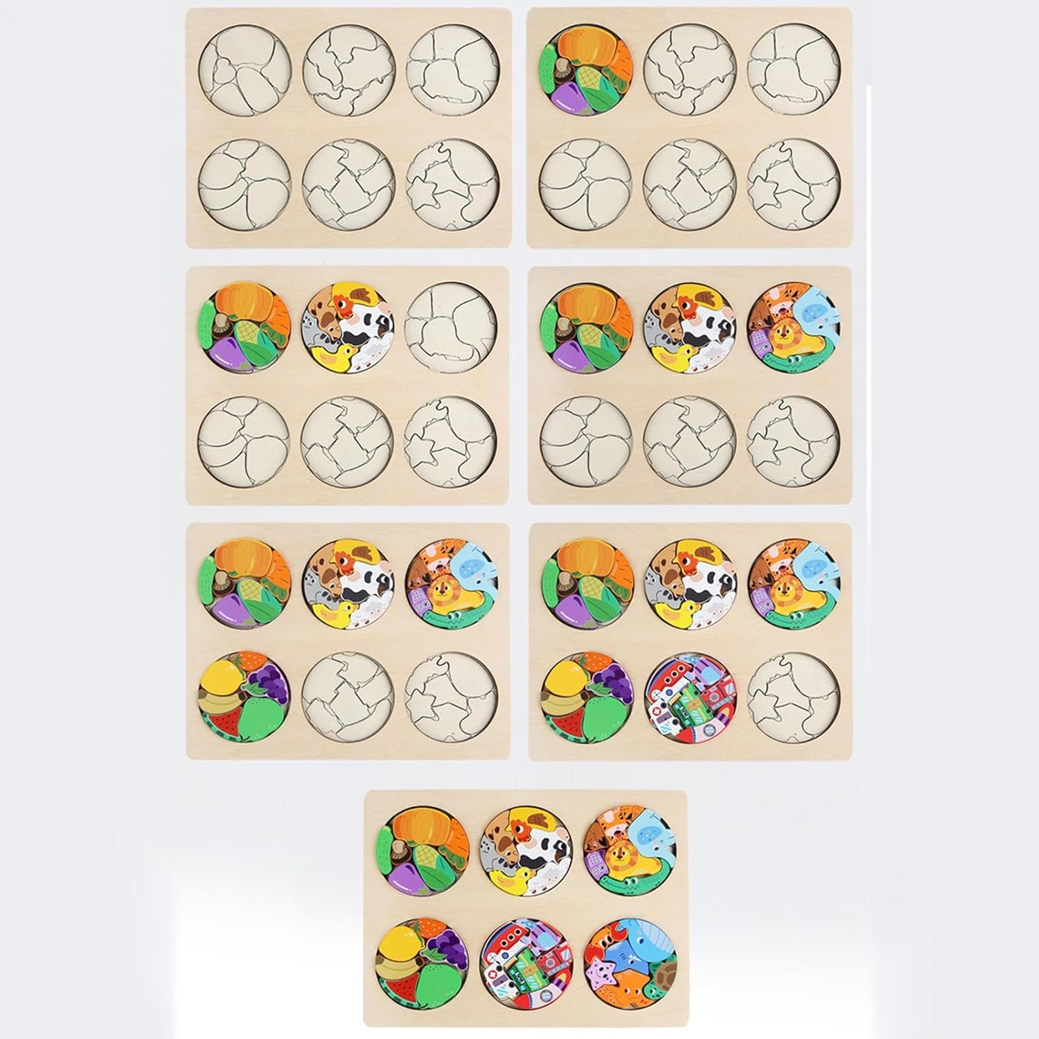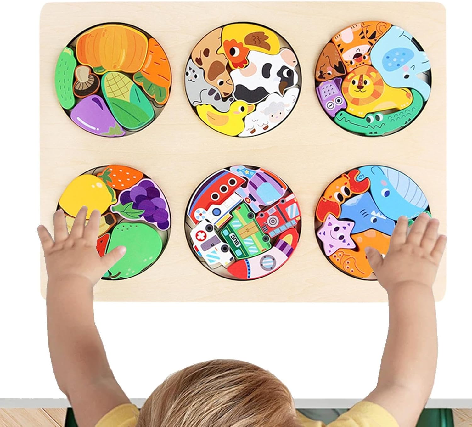 Non facili da rompere: i puzzle di blocco 'edilizia sono realizzati in legno con angoli arrotondati e superfici lisce per eliminare le bara, promuovendo un di gioco sicuro e divertente per i bambini Accelerare il 'apprendimento: scoprire vari frutti, verdure, animali da allevamento e trasporti mentre i bambini risolvono enigmi, promuovendo lo sviluppo cognitivo e l'espansione a conoscenza con sfide basate sul suggerimento Rafforzare le capacità di concentrazione: stimolare la loro attenzione ai dettagli, i bambini devono posizionare attentamente ogni pezzo di puzzle durante l'assemblaggio, migliorando la loro coordinamento e precisione Design multiuso: i bambini vengono coinvolti in giochi interattivi con puzzle in legno, apprendimento di frutta, verdura, animali da allevamento, trasporti, ecc. Rafforzare i legami familiari: impegnarsi nel processo del puzzle non solo approfondisce la connessione emotiva tra genitori e bambini, ma aiuta anche a completare il lavoro insieme, migliorando le relazioni genitore-figlio e offrendo la possibilità di sostenere lo sviluppo di tuo figlio