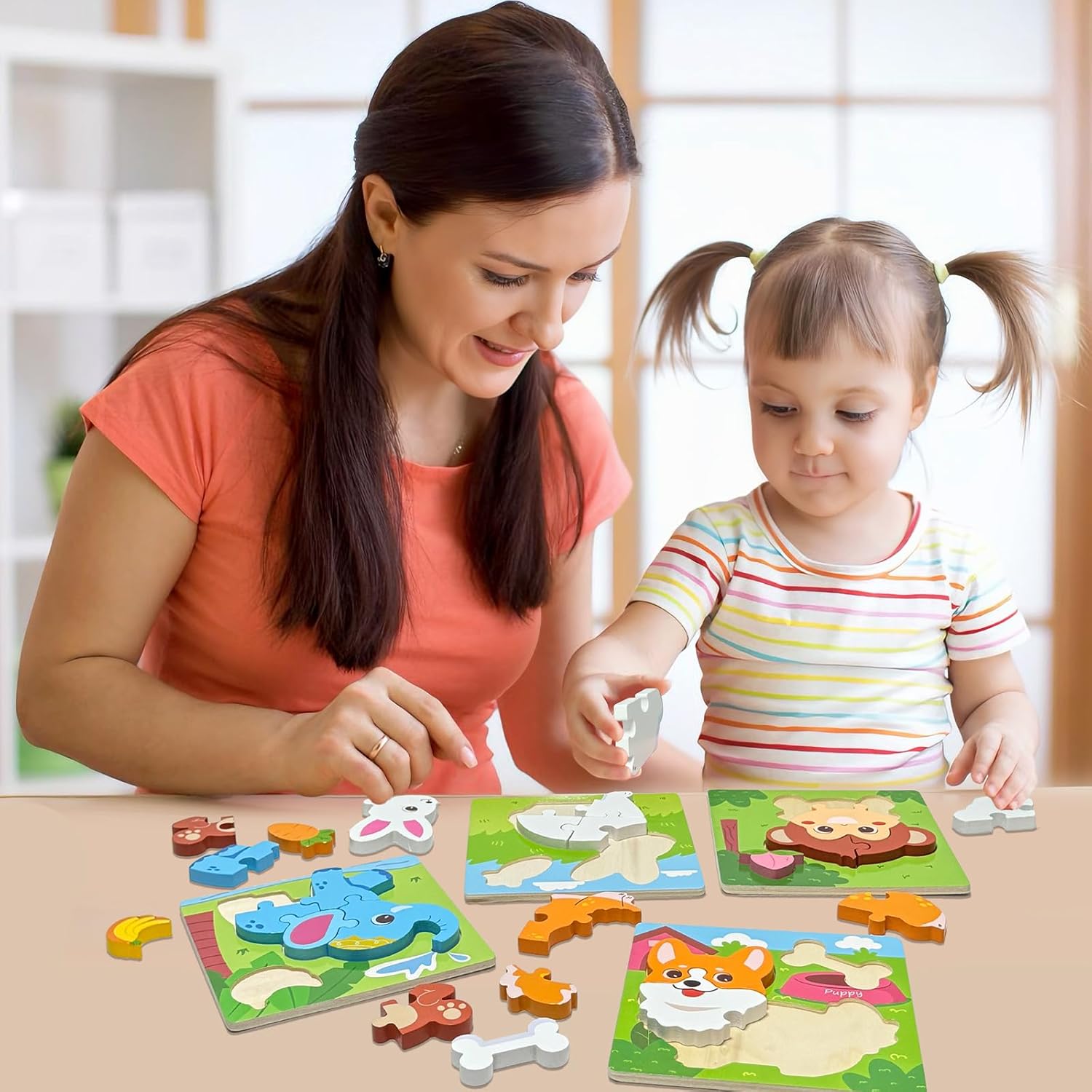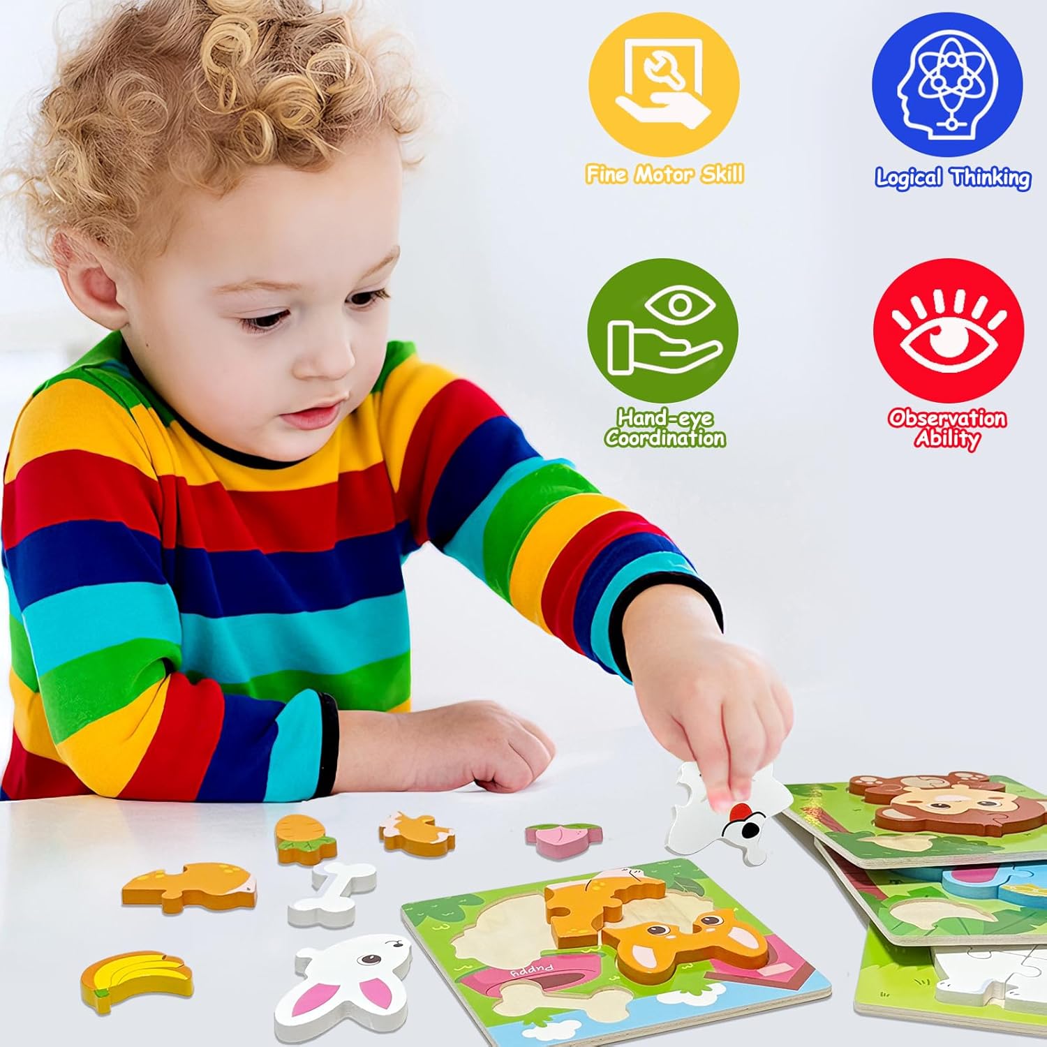4 in 1 Puzzle di Legno Animale: Include 4 diversi set di giocattoli puzzle in legno per bambini, ognuno con un carino animale e cibo corrispondente. Attirare l'attenzione dei bambini attraverso diverse immagini animali Materiale Sicuro: Il puzzle dei bambini è realizzato in legno di alta qualità con lucidatura di precisione e i bordi sono lisci senza sbavature; Progettato con design a blocchi di grandi, specificamente progettato per le mani piccole per afferrare i bambini di età compresa tra 1 e 3 anni Giocattolo in Legno Montessori: Il bordo del puzzle 15x15cm fornisce ampio spazio operativo, esercita i movimenti sottili delle mani dei bambini e la coordinazione degli occhi della mano attraverso movimenti Promuovere lo Sviluppo linguistico e l'interazione genitore-figlio: i genitori possono interagire con i loro bambini descrivendo le forme, i colori o altre caratteristiche degli animali da puzzle, usando il linguaggio per aiutarli a imparare nuovi vocaboli, migliorare le competenze linguistiche Scelta Regalo Perfetta per i Bambini: Questo giocattolo puzzle in legno è il miglior regalo per ragazzi e ragazze di 1, 2 e 3 anni. Adatto come regalo di Capodanno, compleanno, Natale, Giorno dei bambini e regalo di Pasqua