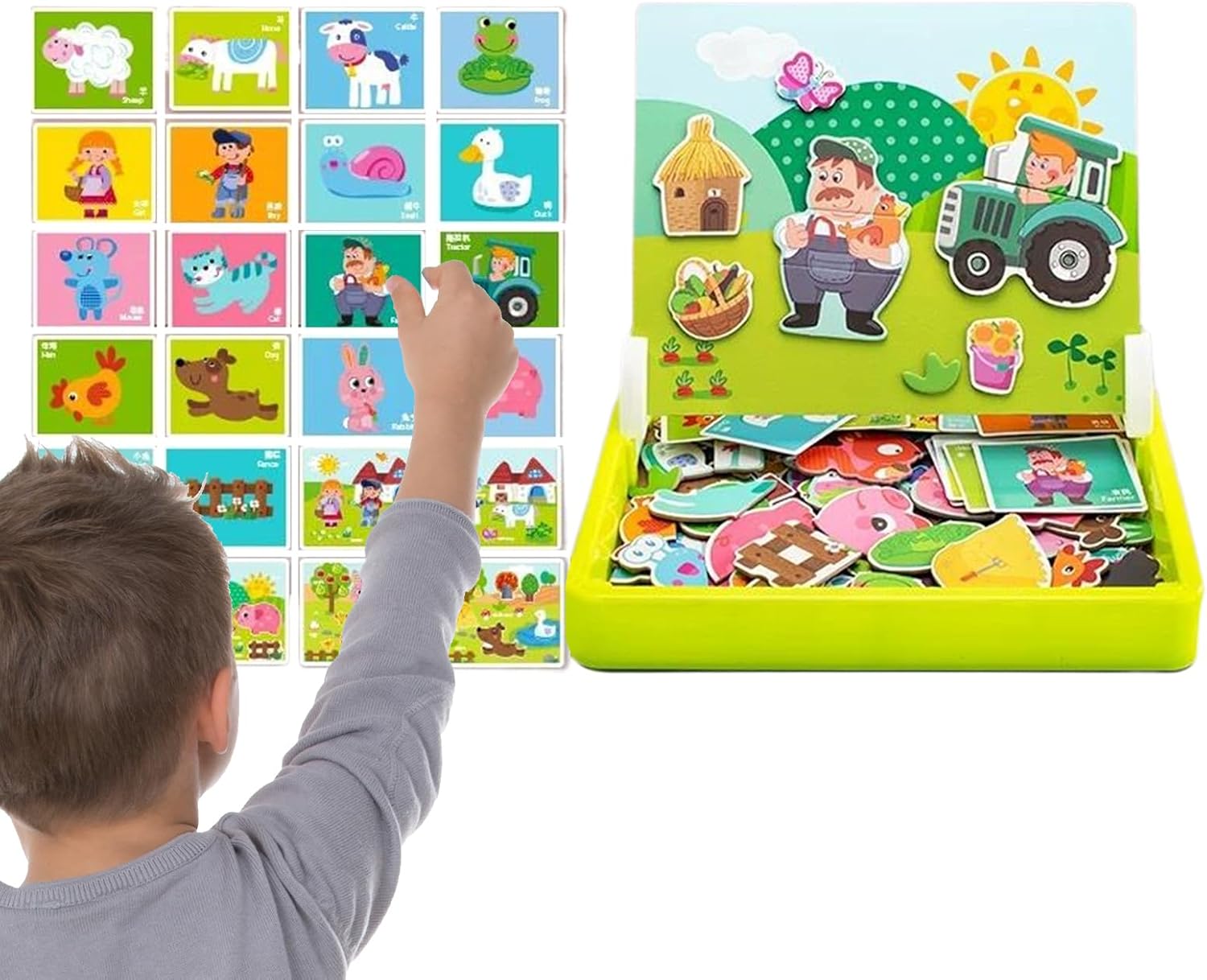 USO DUREVOLE I nostri puzzle magnetici per bambini piccoli combinano materiali resistenti all'usura con un design sicuro con bordi arrotondati per fornire una durata affidabile e una sensazione rilassante per i genitori. Promuovono le capacità di problem solving attraverso esperienze di apprendimento pratico e supportano lo sviluppo cognitivo per lungo tempo, ideali per l'uso quotidiano del gioco in diversi ambienti. Sviluppare la consapevolezza estetica: i puzzle magnetici per bambini aiutano a costruire la consapevolezza estetica sviluppando capacità di pensiero spaziale, allenando le abilità cognitive precoci e migliorando la coordinazione occhio-mano. Questo crea un ambiente giocoso per risolvere le sfide che aumenta l'agilità mentale e promuove la creatività nei giochi educativi. I bambini scoprono colori e forme in modo divertente. Creatore di creatività magnetica: il puzzle magnetico offre un costruttore di personaggi magnetici con funzionalità a doppia faccia, che stimola il gioco di travestimento creativo e consente un utilizzo personalizzabile per gioco singolo o condiviso. Ispira giovani menti in diversi ambienti promuovendo l'immaginazione e le abilità narrative. Il design a doppia faccia permette di esplorare molteplici scenari di gioco e supporta così lo sviluppo creativo in set da solo e multiplayer Miglioramento del gioco di ruolo: il puzzle magnetico facilita il riconoscimento delle espressioni emotive attraverso autentiche simulazioni facciali e supporta l'integrazione dei giochi di ruolo nel processo di apprendimento. Fornisce una comprensione di base dell"etichetta sociale per un uso efficace nelle posizioni di viaggio o nel contesto educativo domestico. Ciò promuove lo sviluppo cognitivo e l'interazione sociale in vari ambienti. Facile da trasportare: i puzzle magnetici offrono un gioco portatile accattivante grazie a connessioni magnetiche sicure che impediscono alle parti di scivolare. Il design compatto e adatto per i viaggi li rende una scelta ideale per le famiglie in viaggio e garantisce divertimento durante i viaggi in auto o in attesa in aeroporto.