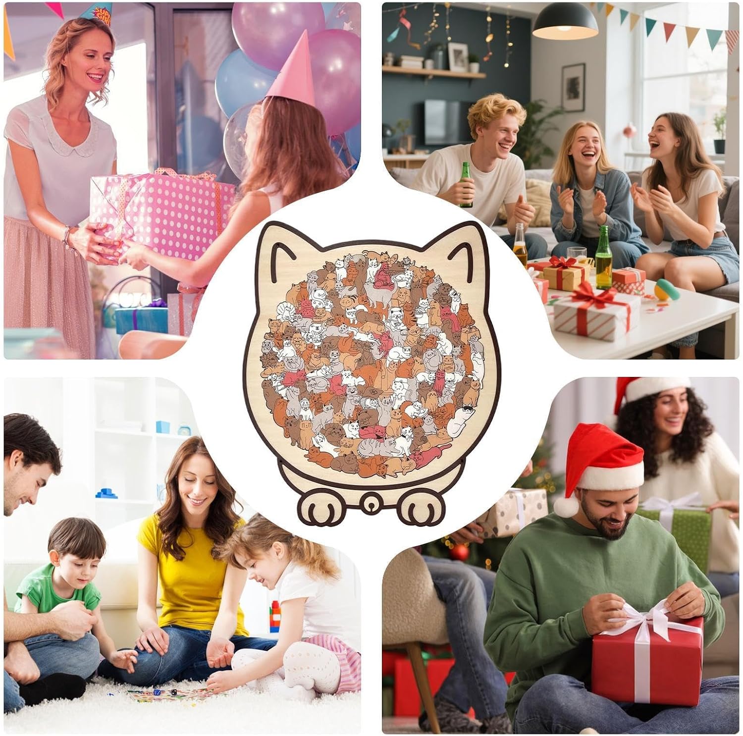 Un regalo pratico: il giocattolo puzzle per gatti offre attività divertenti per i gatti e allo stesso tempo funge da oggetto artistico che aumenta l'intimità. Le sue qualità decorative da collezione lo rendono un'opzione regalo ideale, fondendosi senza sforzo con interni eleganti e incoraggiando connessioni commoventi attraverso attività ludiche con animali. Questo prodotto versatile crea un ambiente accogliente in cui gli animali domestici e i proprietari trascorrono del tempo di qualità ed è adatto per attività tranquille e divertenti: i puzzle per gatti creano un'atmosfera rilassante con il loro design accattivante e ti aiutano a immergerti in un'attività mirata che riduce lo stress e porta un puzzle rilassante in ogni piacevole giornata a casa. Ideale per ore di relax, questo puzzle favorisce il rilassamento e la concentrazione per il relax quotidiano con i puzzle dei gatti. Sfida impegnativa: con 135 pezzi realizzati con precisione, i puzzle dei gatti sfidano la logica e la pazienza attraverso il loro design dal taglio irregolare. Creano un'attività coinvolgente per coloro che apprezzano passatempi dettagliati e ponderati e forniscono un'esperienza arricchente per i puzzle più esigenti che vogliono mettere alla prova le proprie abilità con motivi complessi. Caratteristiche del materiale durevole: questi puzzle per gatti per adulti sono progettati in legno di alta qualità con superficie ecologica. I bordi lisci e sicuri meticolosamente rifiniti creano una piacevole esperienza tattile, perfetta per rilassarsi dopo il lavoro o momenti di gioco consapevoli, portando gioia duratura. Struttura accattivante: con una forma distintiva di gatto e un design creativo, questo puzzle con gatti presenta strutture accattivanti che catturano l'attenzione, rendendolo ideale per attività ricreative o come rompighiaccio in occasione di eventi sociali. Il look accattivante attira l'attenzione e crea momenti divertenti che invitano all'interazione e alleggeriscono l'atmosfera.