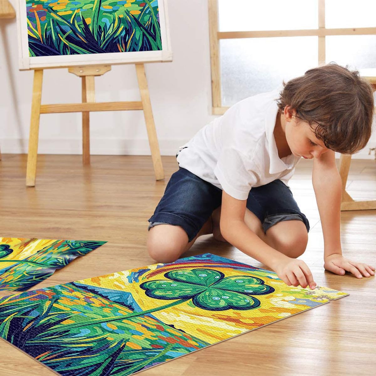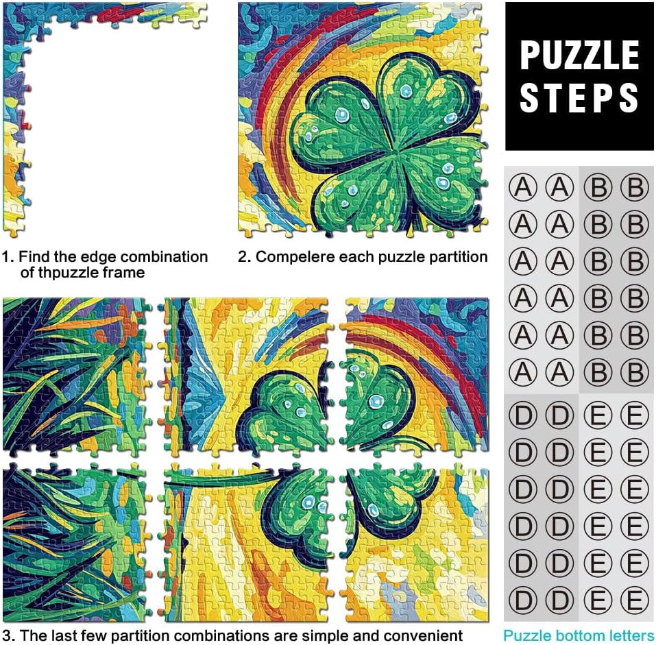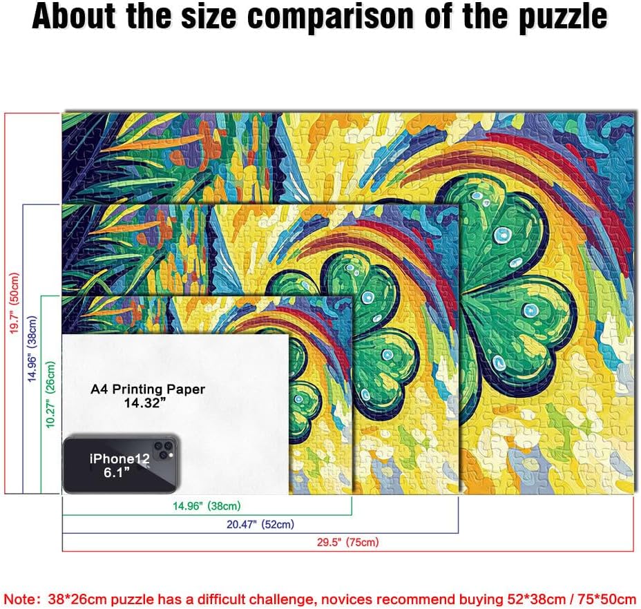 Puzzle per adolescenti 1000 pezzi dipinto quadrifoglio Il puzzle è confezionato in un sacchetto con cordoncino e viene fornito con una bellissima confezione regalo e un poster regalo a grandezza naturale. Dimensioni finite 38x26 cm 【Alta qualità】: questo puzzle da 1000 pezzi è realizzato in cartone riciclato di alta qualità. Grazie alla più recente tecnologia di produzione dei puzzle, la carta è più spessa, più resistente e non si deforma facilmente. 【Design unico】: utilizziamo la tecnologia di taglio di precisione per garantire che ogni pezzo del puzzle si adatti perfettamente e non produca polvere del puzzle. Ogni pezzo del puzzle è stampato con inchiostro antiriflesso e atossico. La guida delle lettere sul retro del puzzle fornisce ulteriore aiuto e facilita la risoluzione. 【Relax e sollievo dallo stress】 I puzzle artistici sono un modo prezioso per godersi il tempo a casa. Assemblare un puzzle da 1000 pezzi può migliorare l'umore, aumentare le capacità cognitive e migliorare la memoria a breve termine. 【Supporto】 Se manca un pezzo del tuo puzzle, contattaci. Saremo lieti di sostituirlo con un puzzle con lo stesso motivo.
