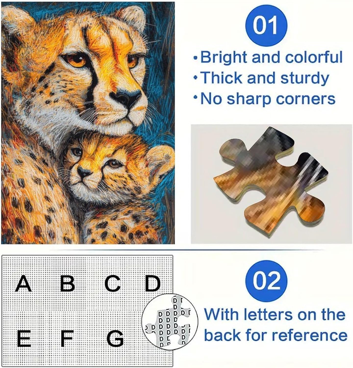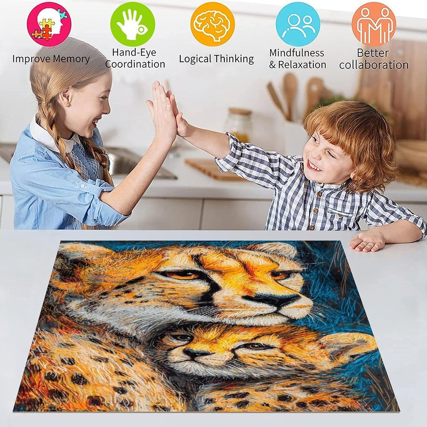 Puzzle per adulti 1000 pezzi difficili Ghepardo della prateria, gioco di giocattoli Ogni pezzo è unico - Gioco divertente e stimolante per famiglie per età 14 26X38CM