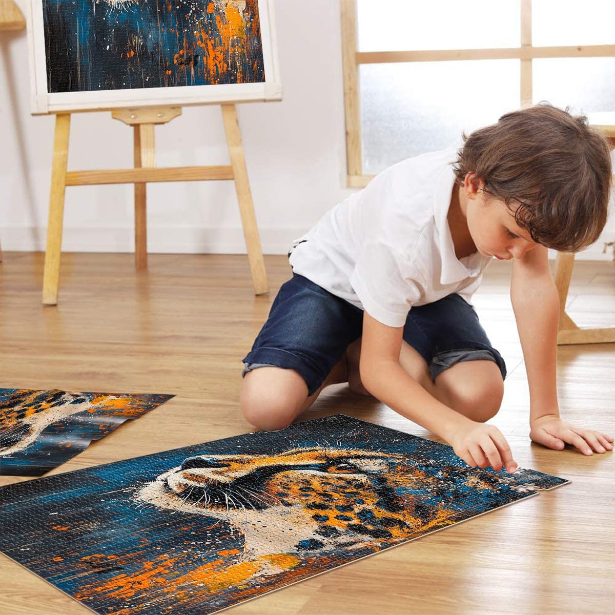 puzzle per adulti 1000 pezzi Dipingere il ghepardo Fatto di legno per età pari o superiore a 14 anni Gioco pratico Regali di Natale per le donne misurare:50x75cm