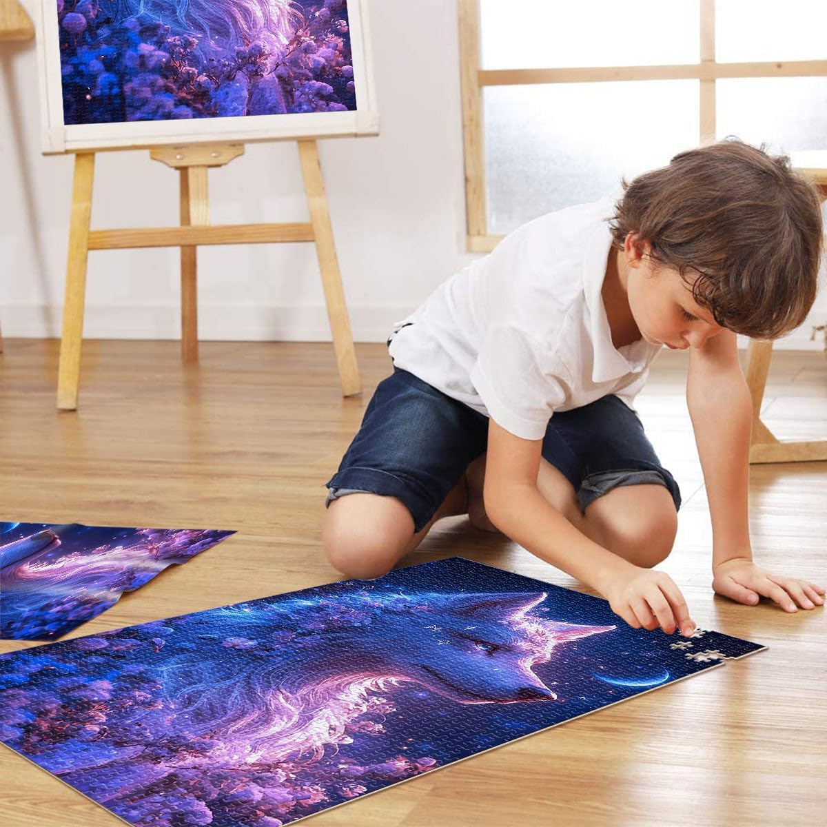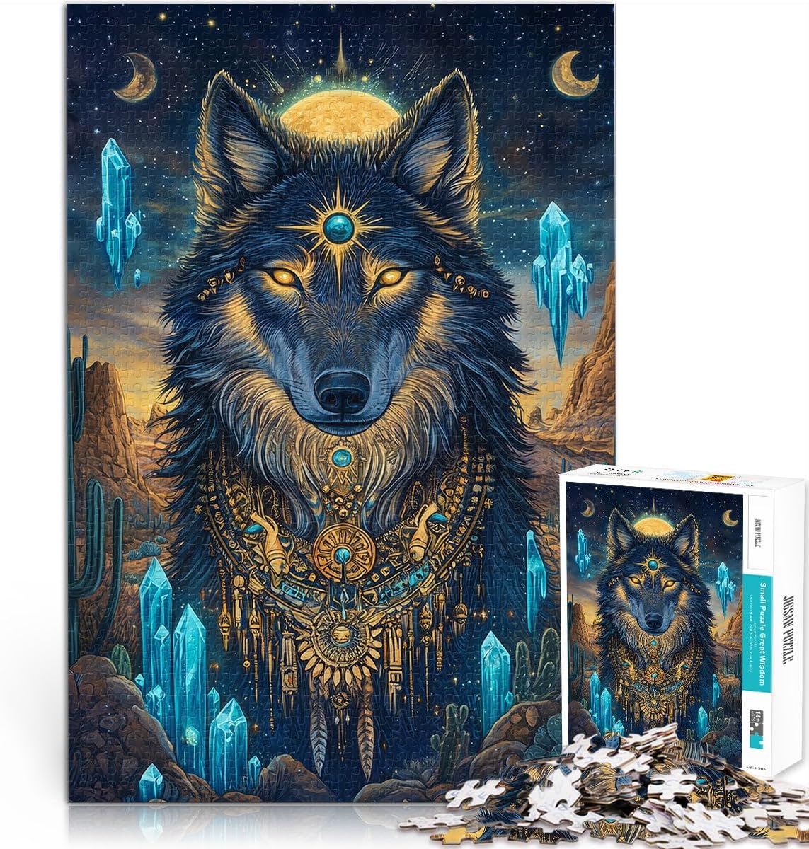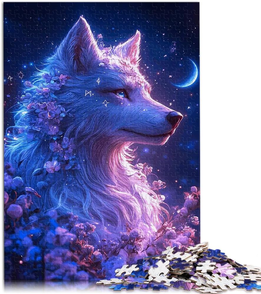 Puzzle per adulti 1000 pezzi Lupo mistico con fiori Fatto di legno per età 14+ Giocattoli Giochi Educativi Antistress Donazione di opere d'arte misurare:50x75cm