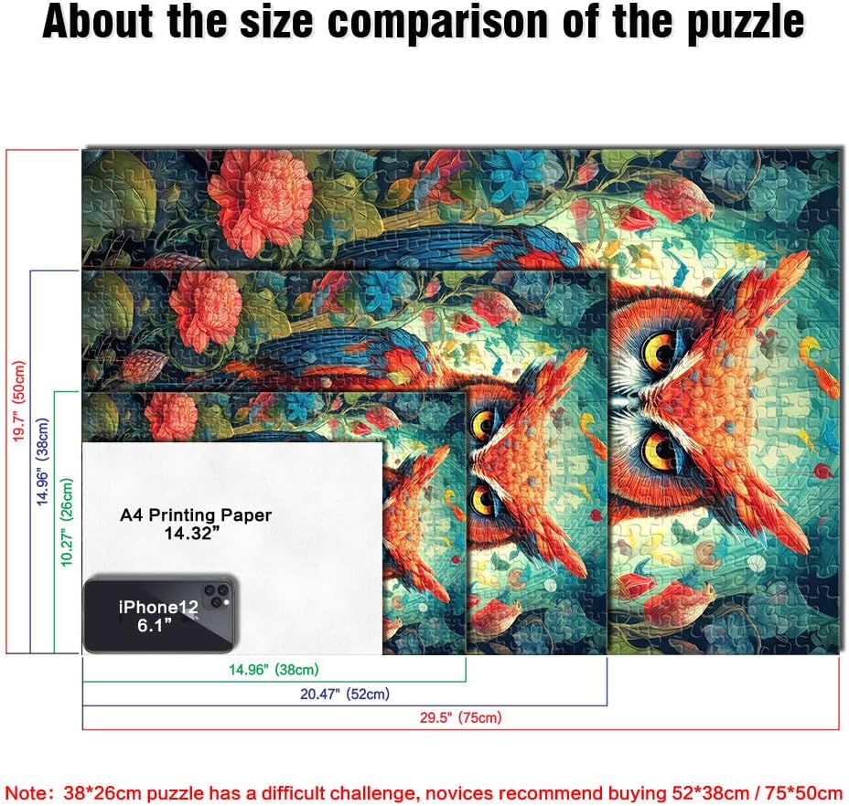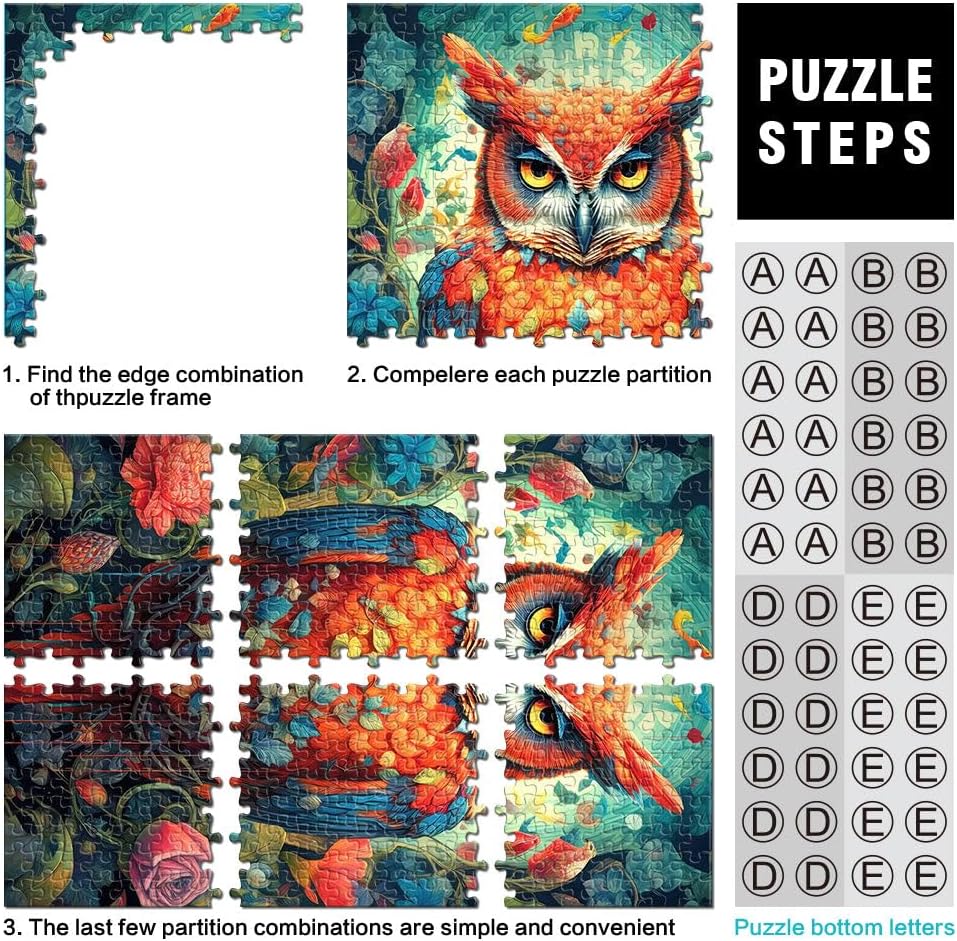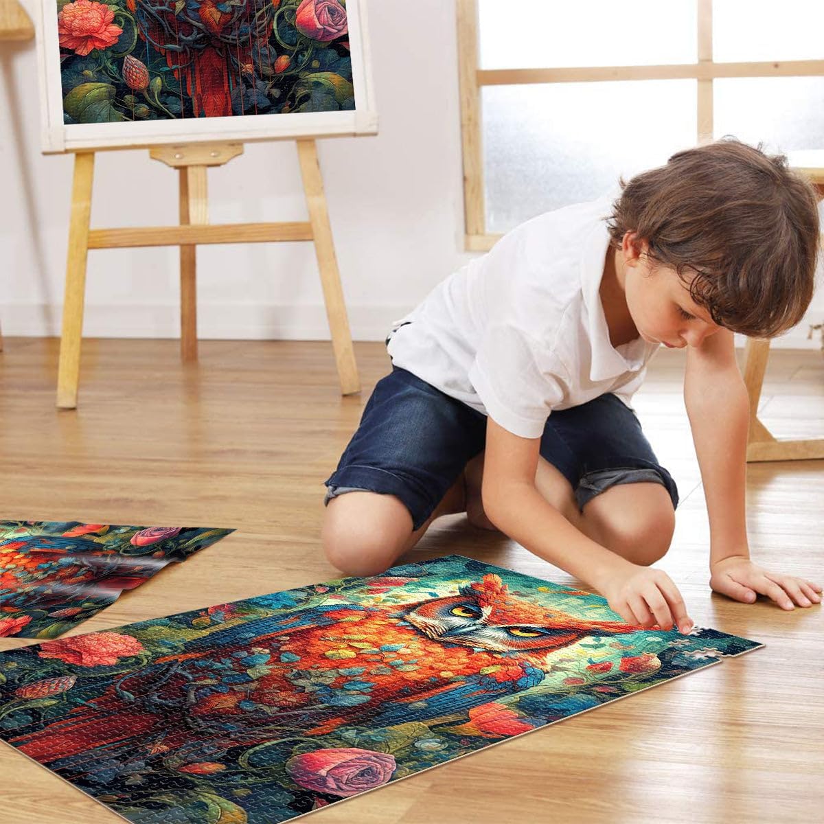 Puzzle per adulti 2000 pezzi Ritratto di ornamento di gufo Fatto di cartone per età 14+ Giocattolo educativo di decompressione intellettuale Regali di compleanno misurare:70x100cm