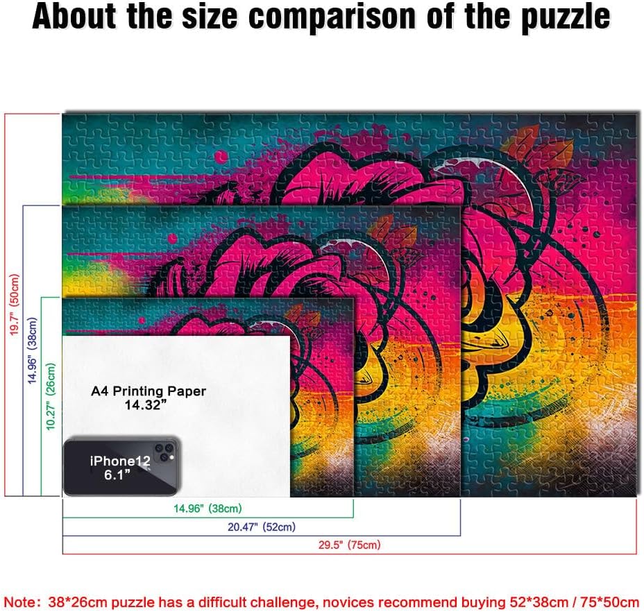 Puzzle per adulti 2000 pezzi Rosa scarabocchiata Fatto di cartone per età 14+ Taglio di precisione Regalo per i compleanni misurare:70x100cm