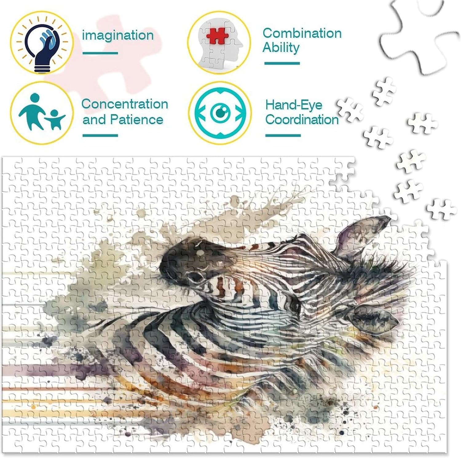 Puzzle da 500 pezzi (52 x 38 cm): le linee di demarcazione sono chiare e non c'è odore. Delizia tutta la famiglia e offri ore di divertimento e intrattenimento mentre assembli questo incredibile puzzle. Il puzzle ad acquerello zebrato è uno dei giochi per adulti per godersi il tempo libero con la famiglia e gli amici. 【Materiale Premium】 I puzzle da 500 pezzi (52 x 38 cm) sono realizzati in legno premium riciclabile al 100%, robusto e flessibile per garantire agli amanti dei puzzle un'esperienza soddisfacente. Consigliato per adulti e bambini dagli 8 anni in su. Dimensioni finite: questo puzzle acquerello zebrato è realizzato con una tecnologia di stampa premium avanzata. Ogni pezzo del puzzle è tagliato in una forma unica per fornire un ulteriore livello di autocontrollo e concentrazione, può ispirare efficacemente il pensiero delle persone, allenare il loro pensiero, giudizio e pazienza. 【Regalo perfetto】 I puzzle sono regali di Natale significativi per bambini, amanti, amici, colleghi e genitori. Il puzzle è adatto per adulti e bambini dai 14 anni in su ed è la scelta ideale per compleanni o regali di Natale. 【Garanzia di soddisfazione al 100%】 Amerai i puzzle da 500 pezzi ben progettati, alla moda ed eleganti (52 x 38 cm). Se hai domande sui puzzle o hai ricevuto un pezzo mancante del puzzle, puoi contattarci in qualsiasi momento, ti forniremo un buon servizio.