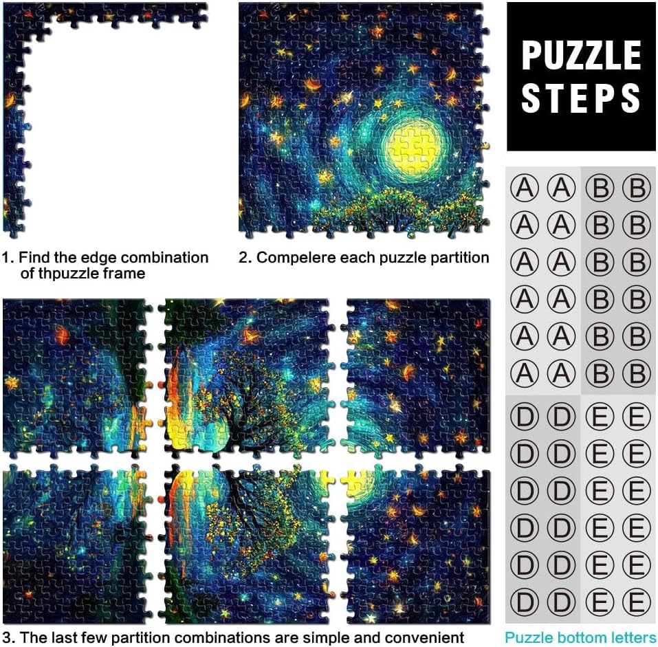 Puzzle per adulti da 1000 pezzi Albero della notte stellata Fatto di legno per 14+ Opera d'arte Regali difficili per donne e uomini misurare:50x75cm