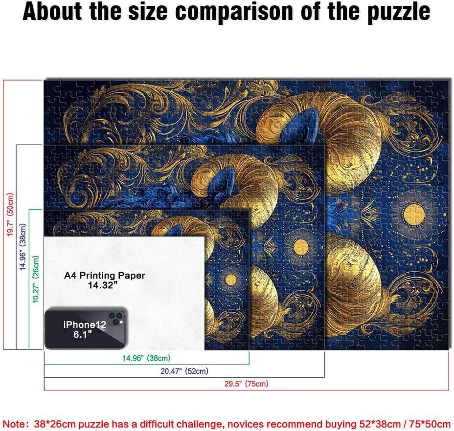 Puzzle per adulti da 1000 pezzi arte della testa di pecora Fatto di legno per età pari o superiore a 14 anni Sollievo dallo stress Regali interessanti per ridurre lo stress misurare:50x75cm