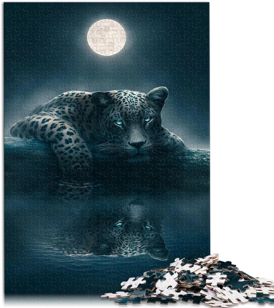 Puzzle per adulti da 1000 pezzi Giaguaro al chiaro di luna Fatto di legno Adatto a partire dai 14 anni Gioco impegnativo Ottimo regalo per i videogiochi misurare:50x75cm