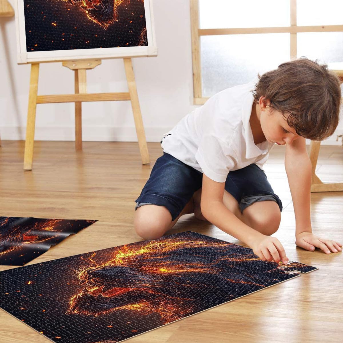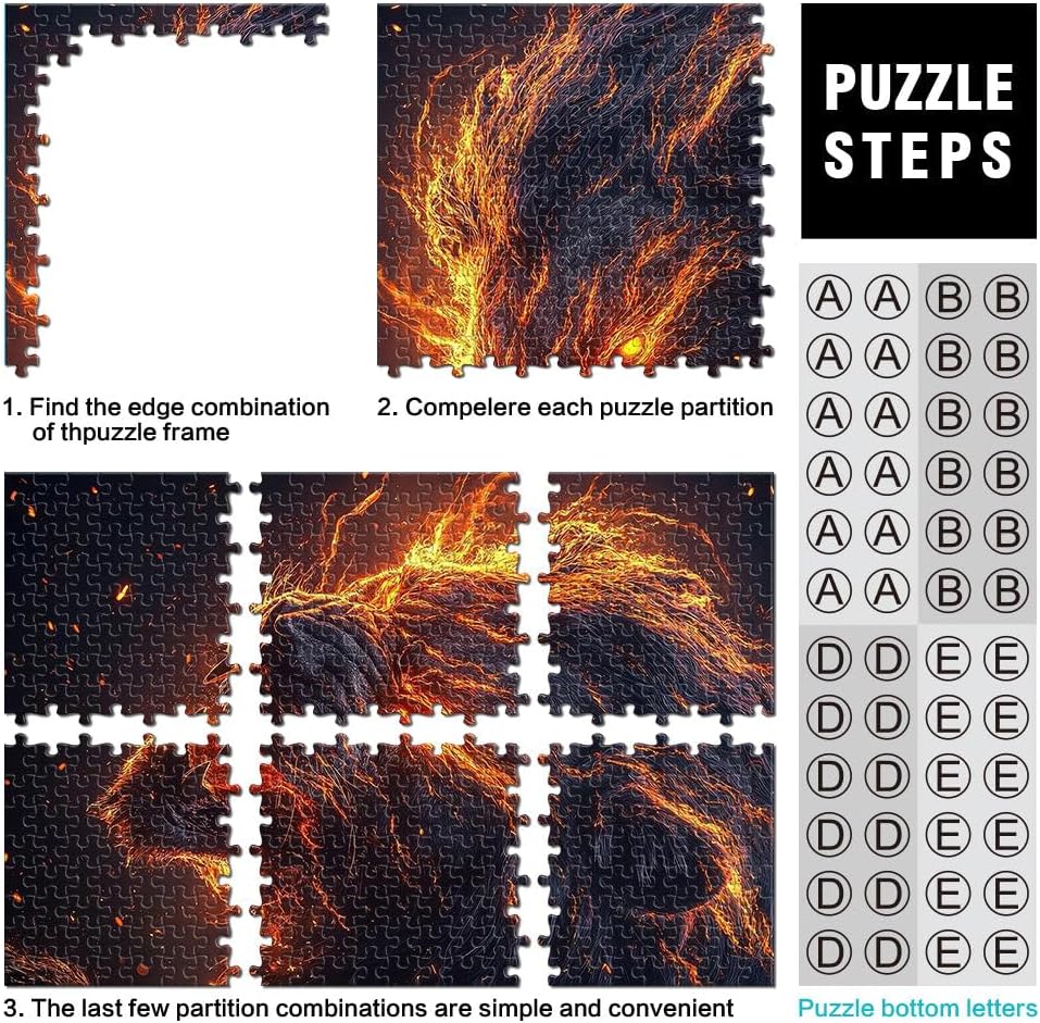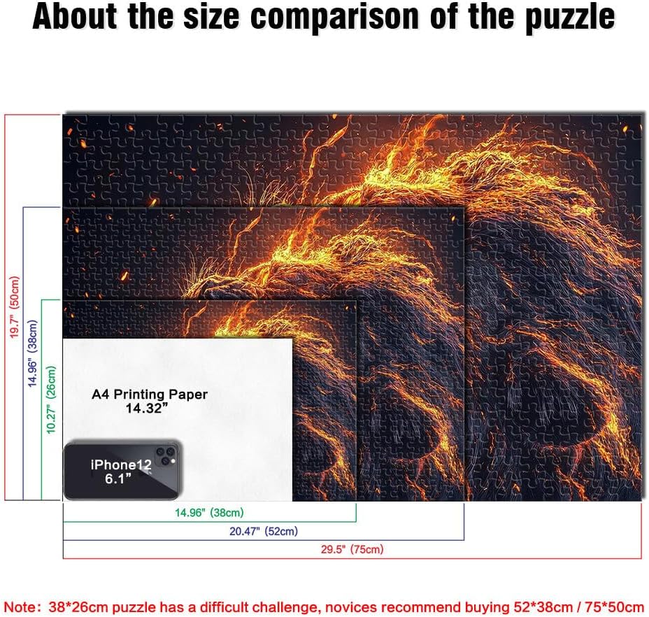 Puzzle per adulti da 1000 pezzi Leone di fuoco ruggente Fatto di legno per età pari o superiore a 14 anni Per il divertimento in famiglia Regalo di compleanno, regali, arte murale misurare:50x75cm