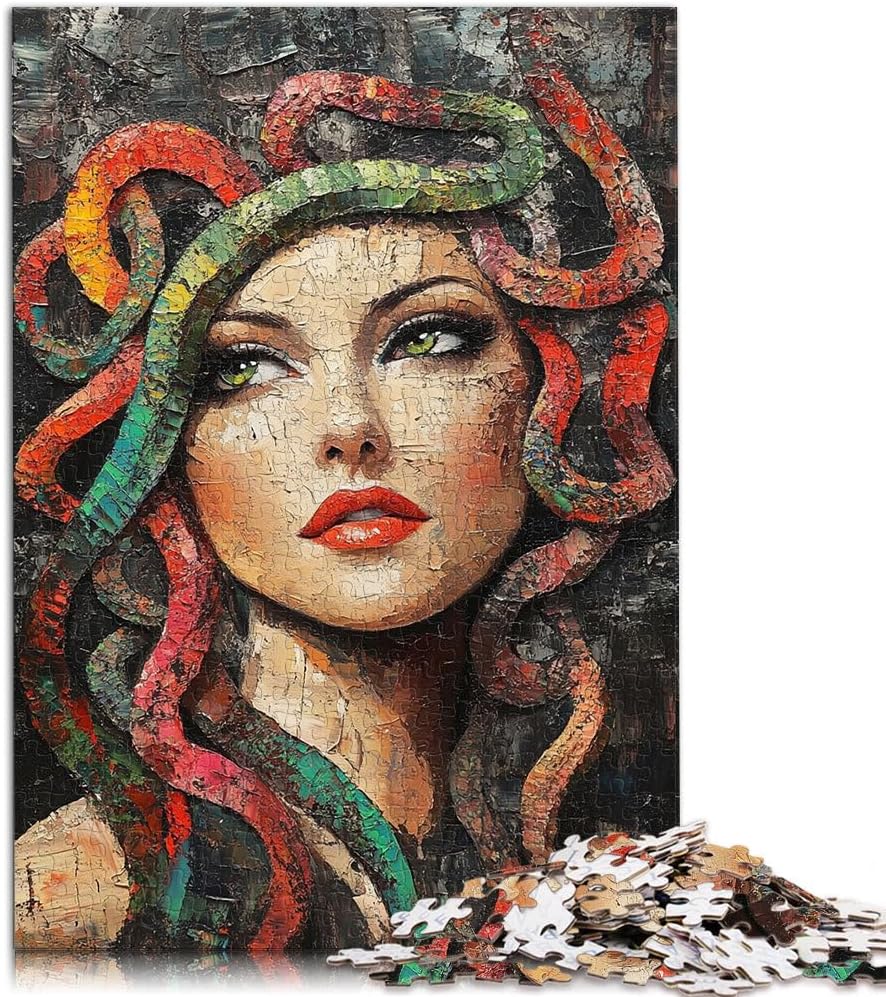 Puzzle per adulti da 1000 pezzi Medusa con serpenti Fatto di legno da 14 anni in su Giocattoli antistress regalo di compleanno misurare:50x75cm