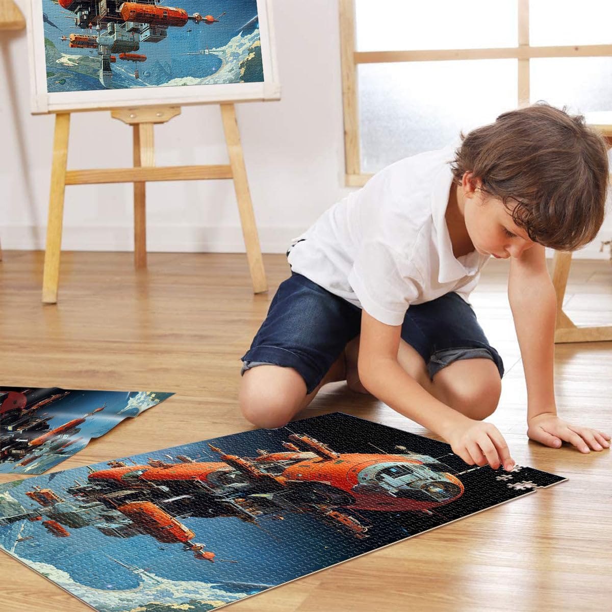 Puzzle per adulti da 1000 pezzi retrofuturismo Fatto di legno per 14+ Sfida di gioco giocattolo educativo Ottimi regali e giocattoli misurare:50x75cm