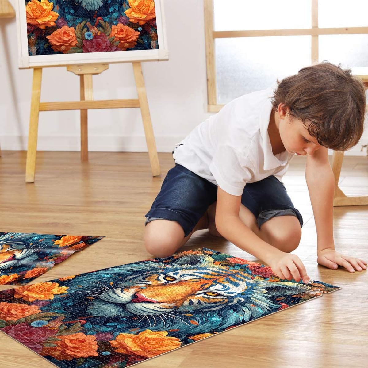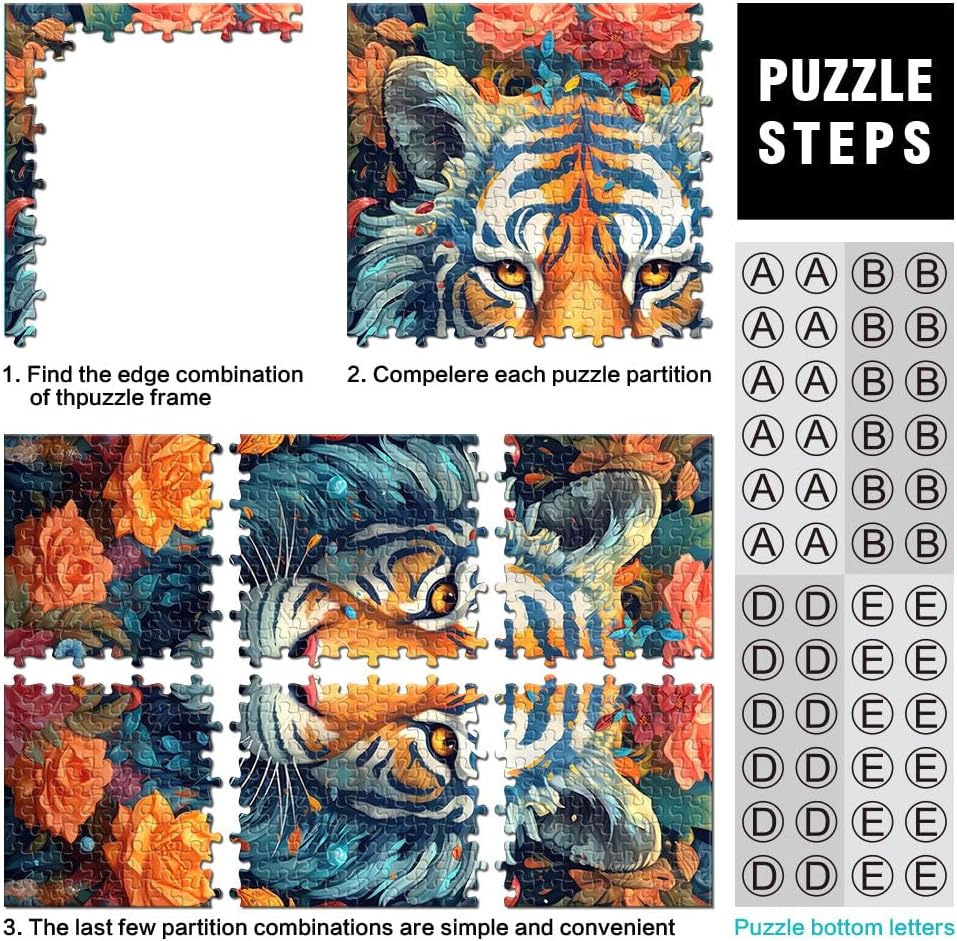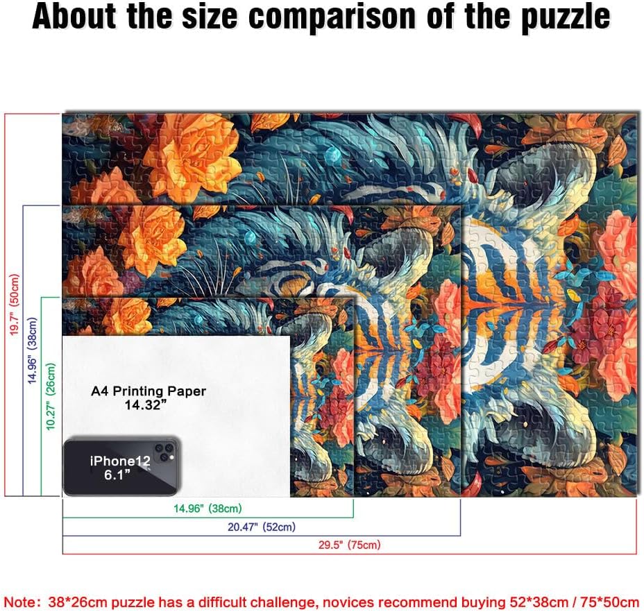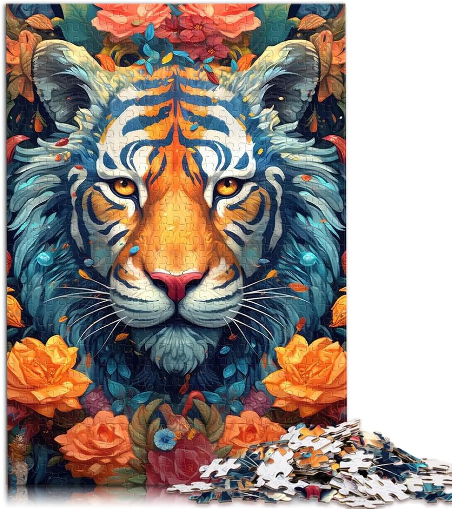 Puzzle per adulti da 1000 pezzi Ritratto ornamentale di tigre Fatto di legno per e da 14 anni in su Home Giochi Educativi Giocattoli Fai da Te Ottimi regali e giocattoli misurare:50x75cm