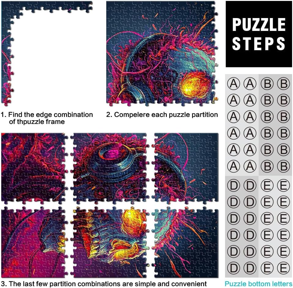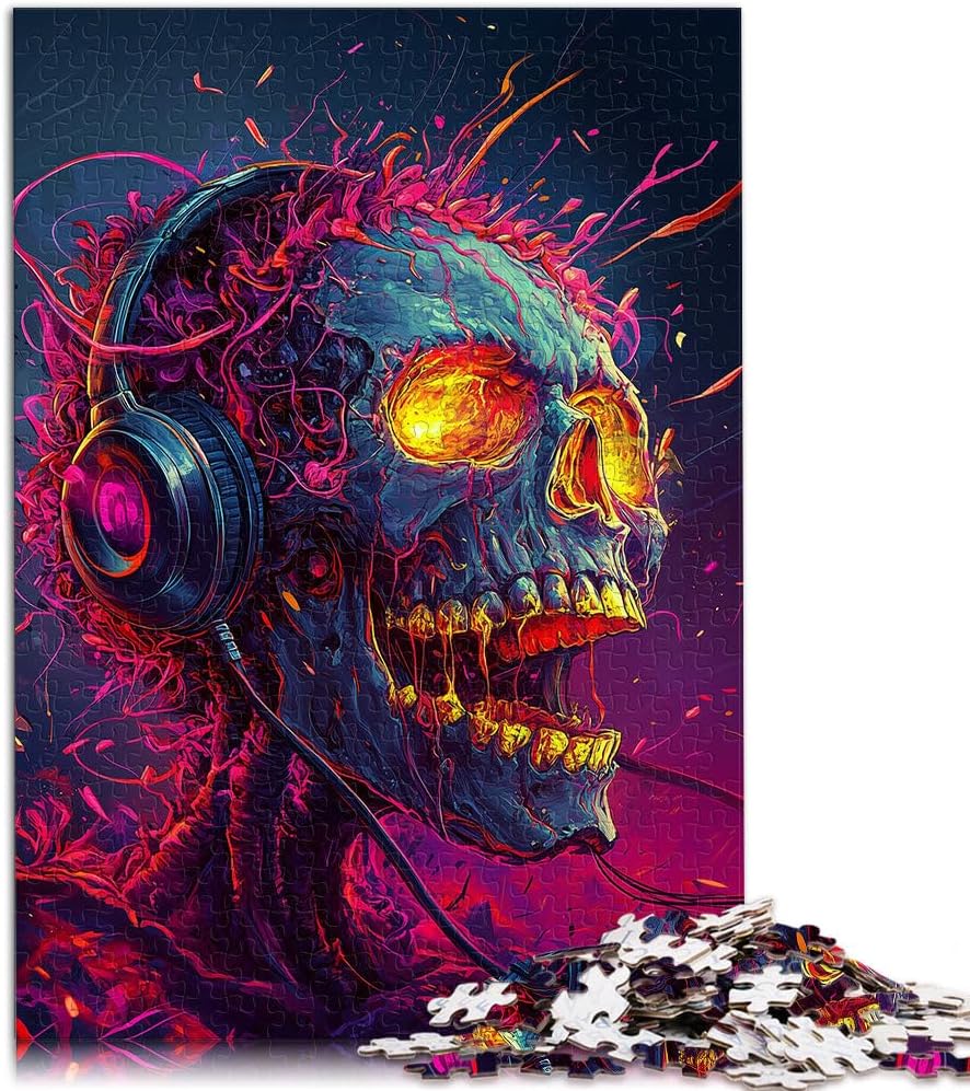 Puzzle per adulti da 1000 pezzi Scheletro che ascolta musica Fatto di legno Adatto a partire dai 14 anni Decorazione perfetta Regalo di opere d'arte misurare:50x75cm