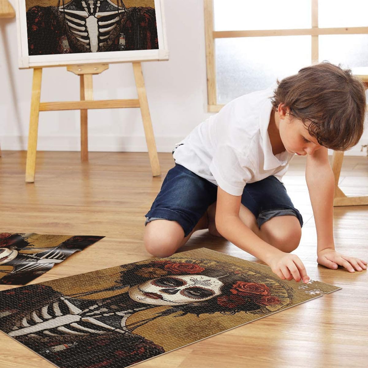 Puzzle per adulti da 2000 pezzi Bellissima donna teschio di zucchero Fatto di cartone per 14+ Gioco intellettuale Regalo per i compleanni misurare:70x100cm