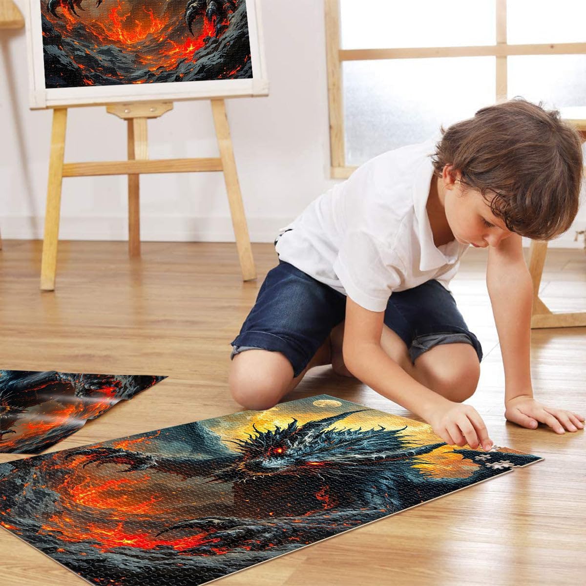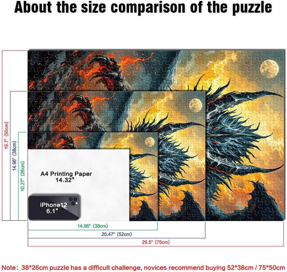 Puzzle per adulti da 2000 pezzi Dipinto ad olio del drago infuocato Adatto a partire dai 14 anni Per divertimento in famiglia e serata di giochi Collezione degli artisti, Belle arti