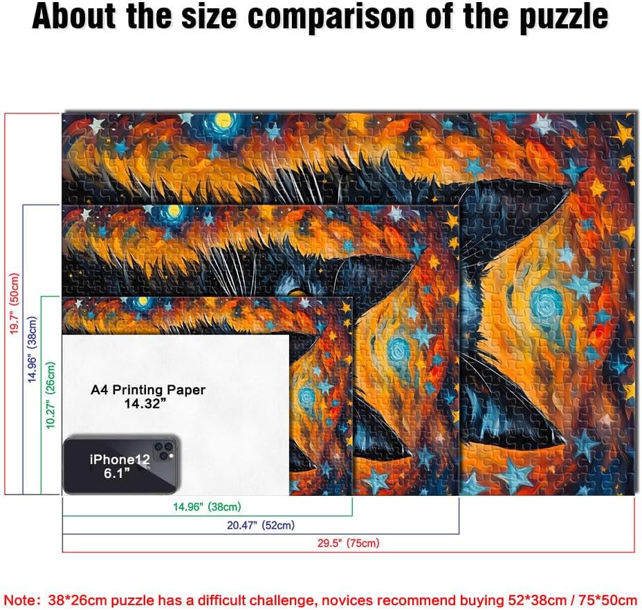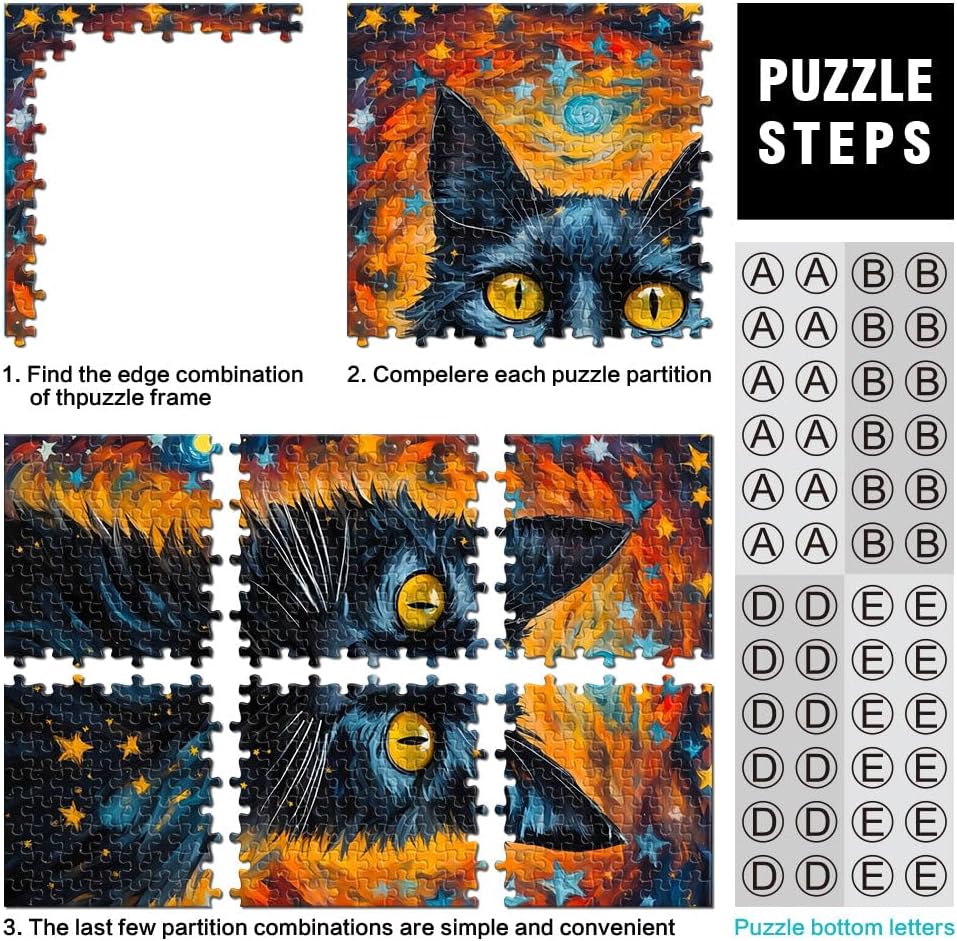 Puzzle per adulti da 2000 pezzi Dipinto di gatto nero Fatto di cartone per e da 14 anni in su sfida educativa Attività divertenti a casa, regali di compleanno, regali di viaggio misurare:70x100cm