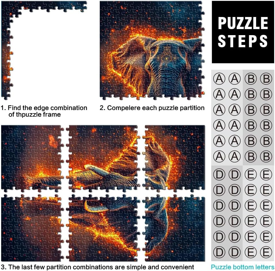 Puzzle per adulti da 2000 pezzi Elefante di fuoco Fatto di cartone per 14+ giocattoli educativi per l'apprendimento Regali di compleanno di Natale misurare:70x100cm
