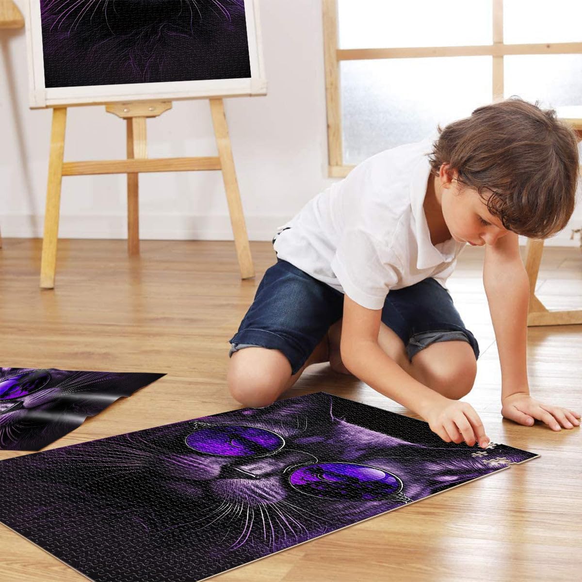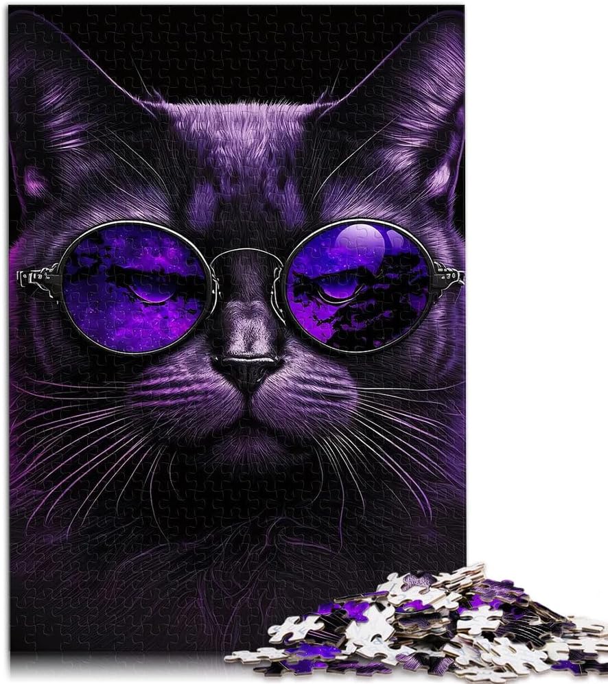 Puzzle per adulti da 2000 pezzi Gatto viola con gli occhiali Fatto di cartone per età pari o superiore a 14 anni Puzzle per Gioco educativo per compleanno e Natale misurare:70x100cm