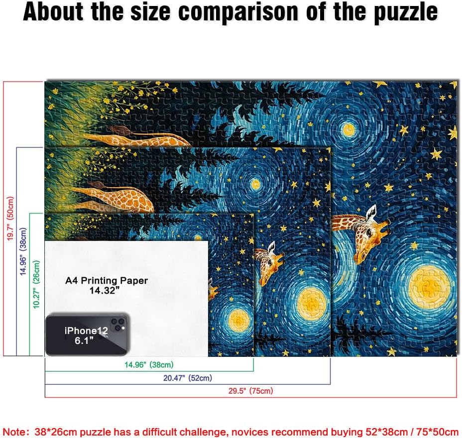 Puzzle per adulti da 2000 pezzi Giraffa stellata Fatto di cartone per età pari o superiore a 14 anni giocattoli educativi per l'apprendimento Regali di compleanno di Natale misurare:70x100cm