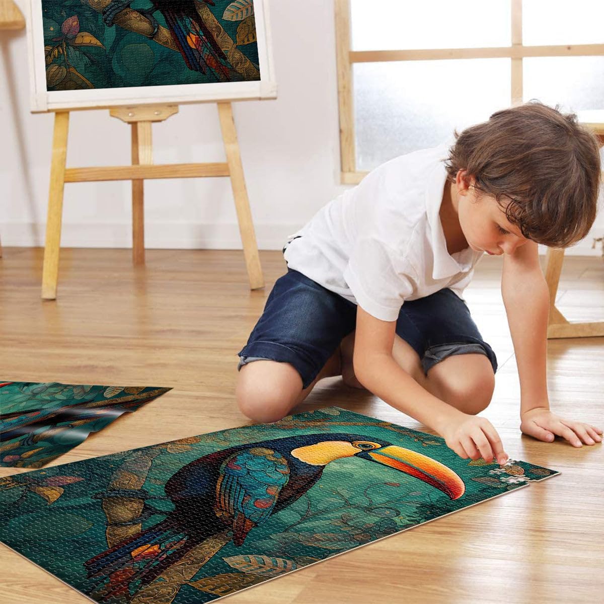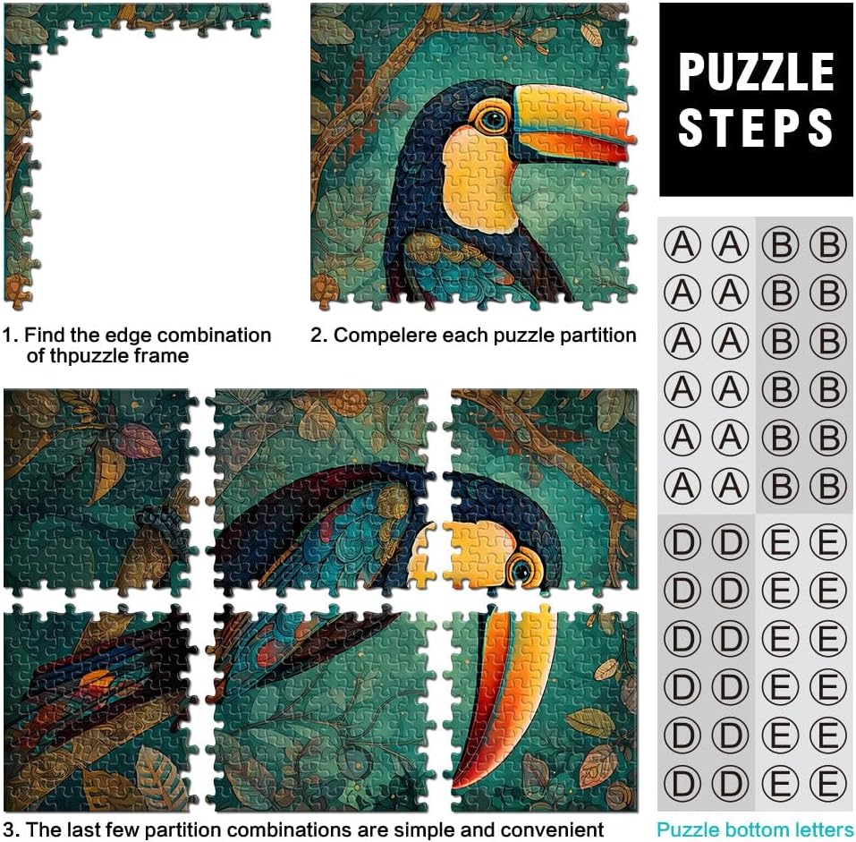 Puzzle per adulti e ragazzi 1000 pezzi Foresta di tucani Fatto di legno Adatto a persone dai 14 anni in su Decorazione della casa Ottimi regali e giocattoli misurare:50x75cm