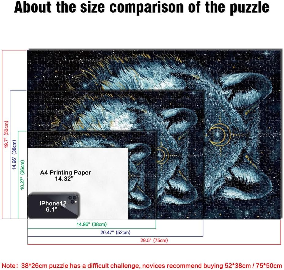 Puzzle per adulti e ragazzi 1000 pezzi Nel buio Lupo Fatto di legno Adatto a persone dai 14 anni in su Giocattoli per la decorazione della casa Regalo divertente misurare:50x75cm